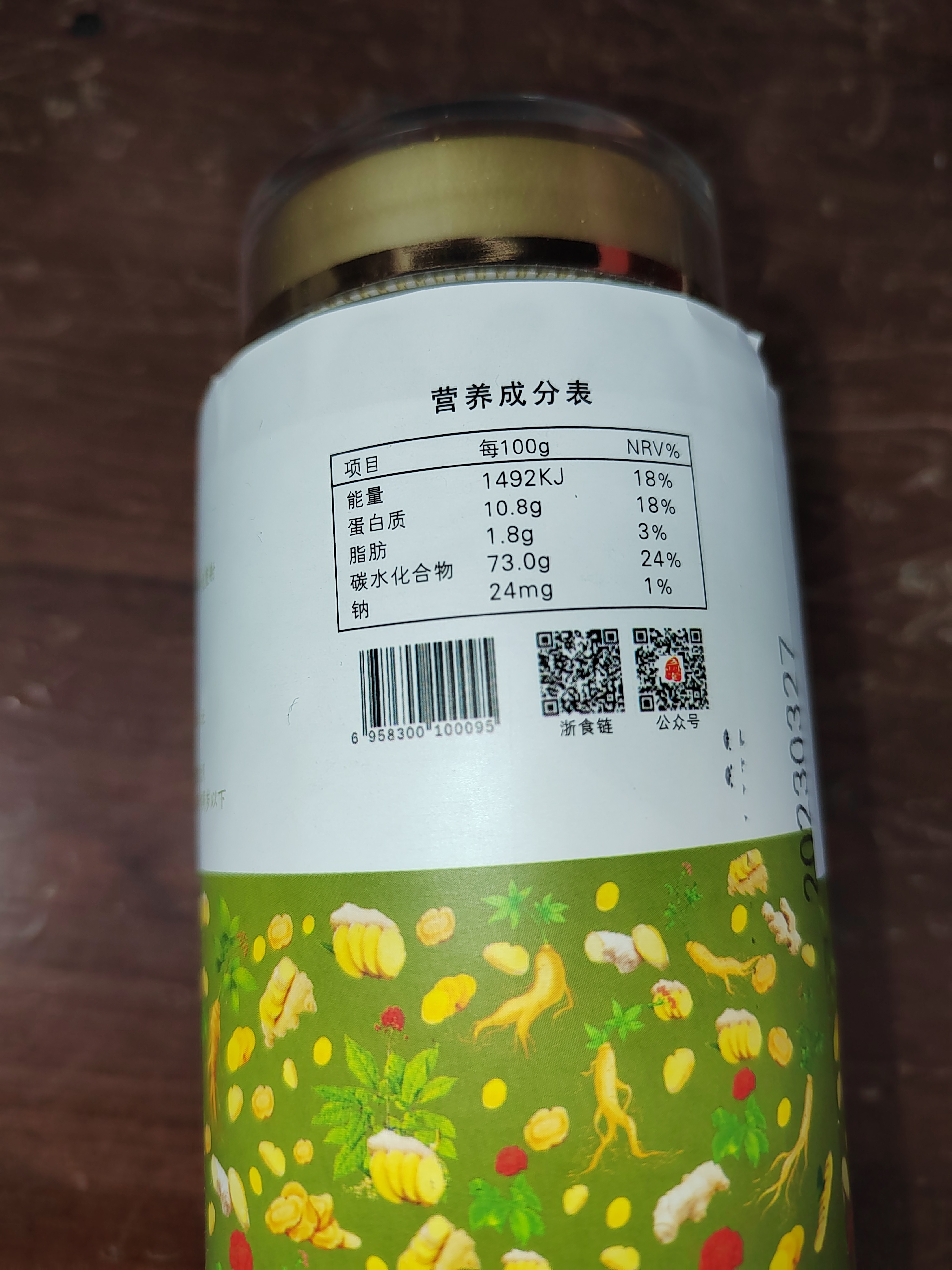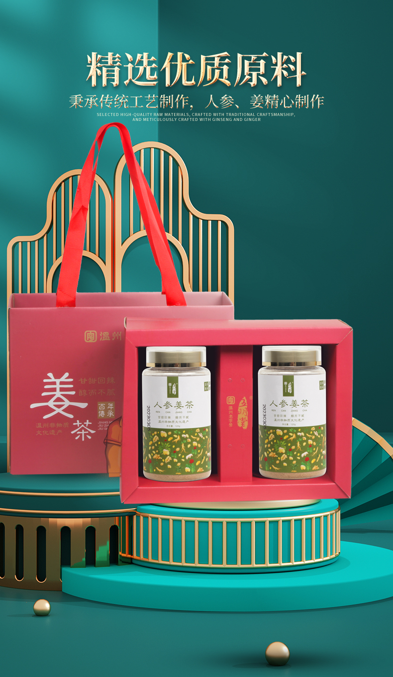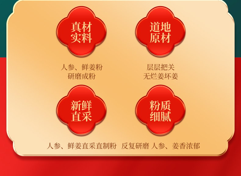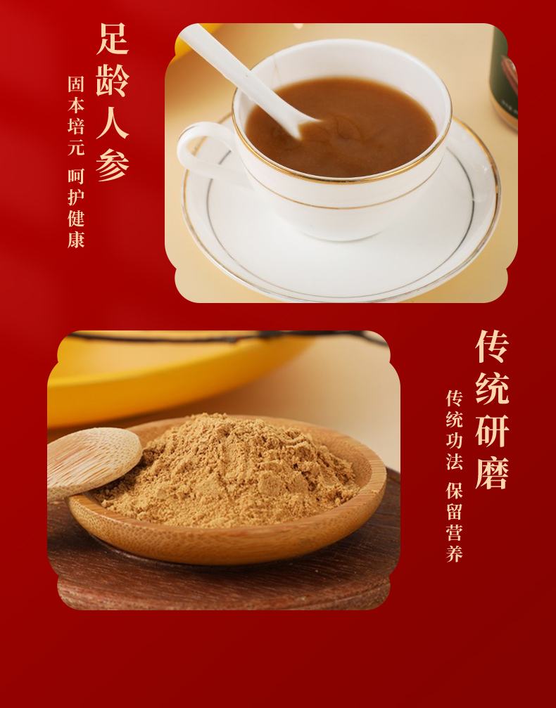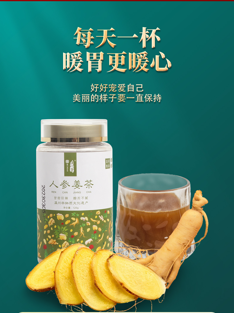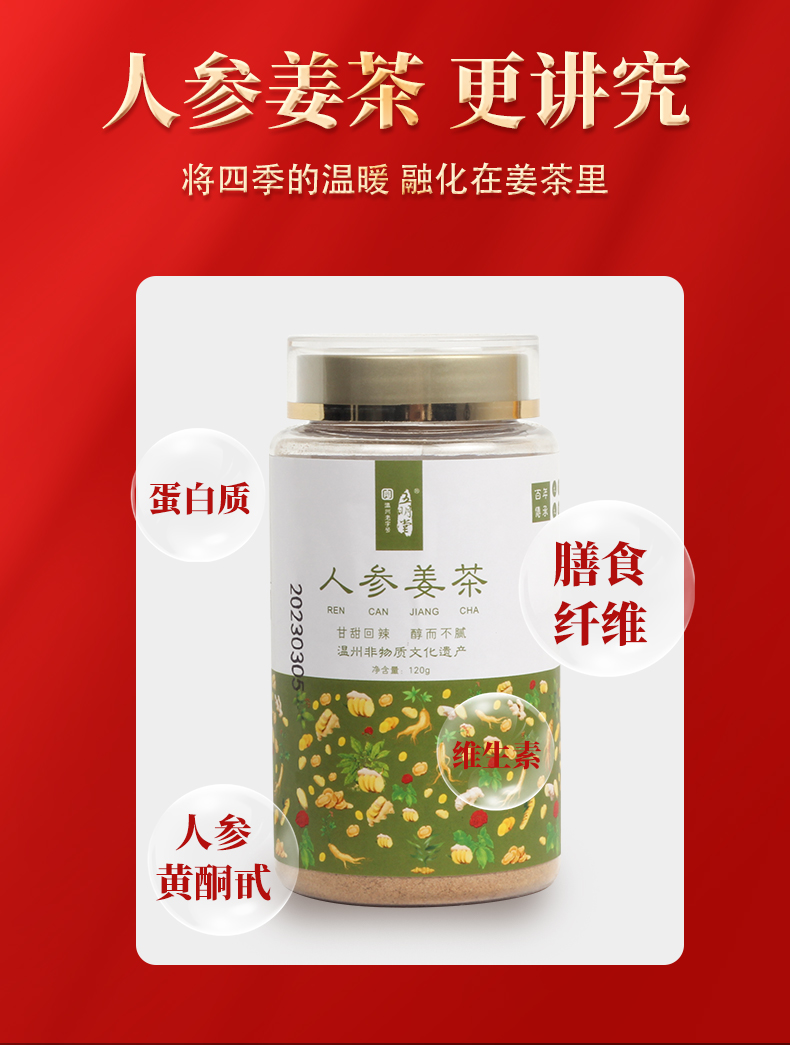 人参姜茶粉 足龄人参 九蒸九晒纯天然食物成份 人参皂苷 姜烯酚 抗炎提升免疫 120g/瓶