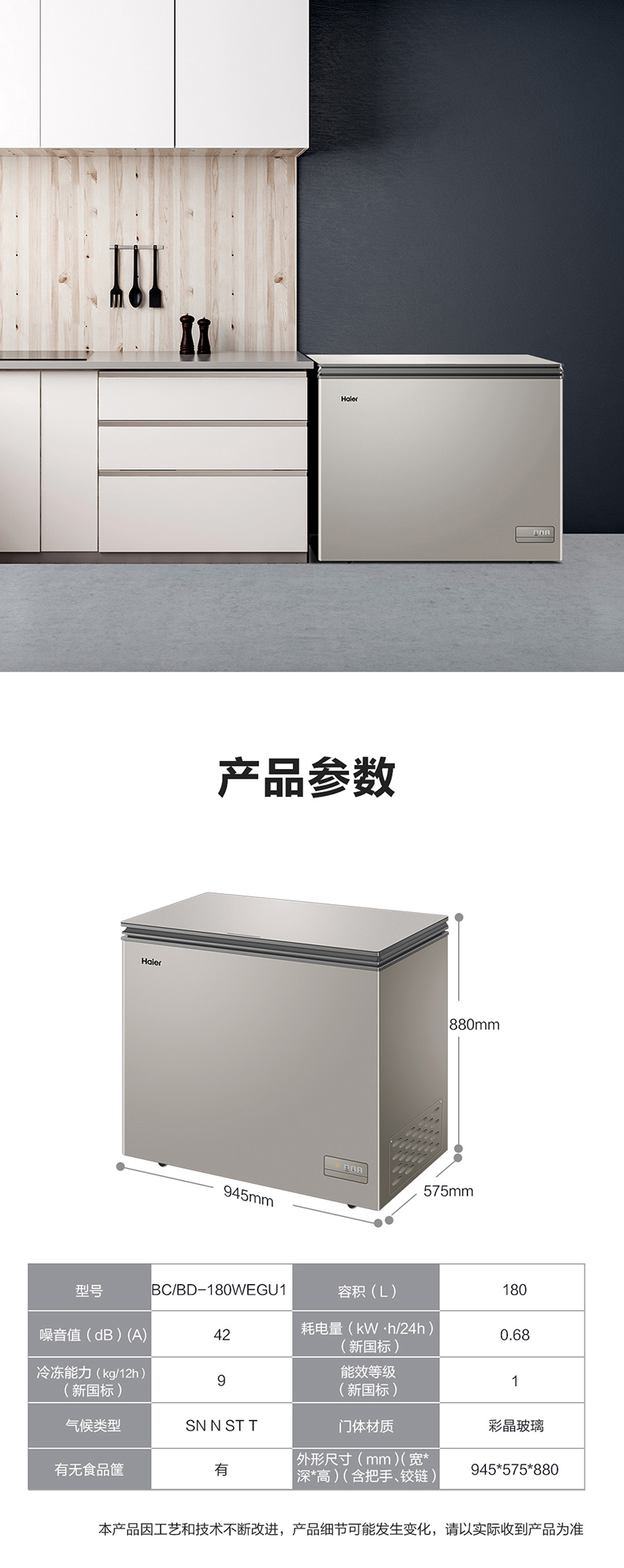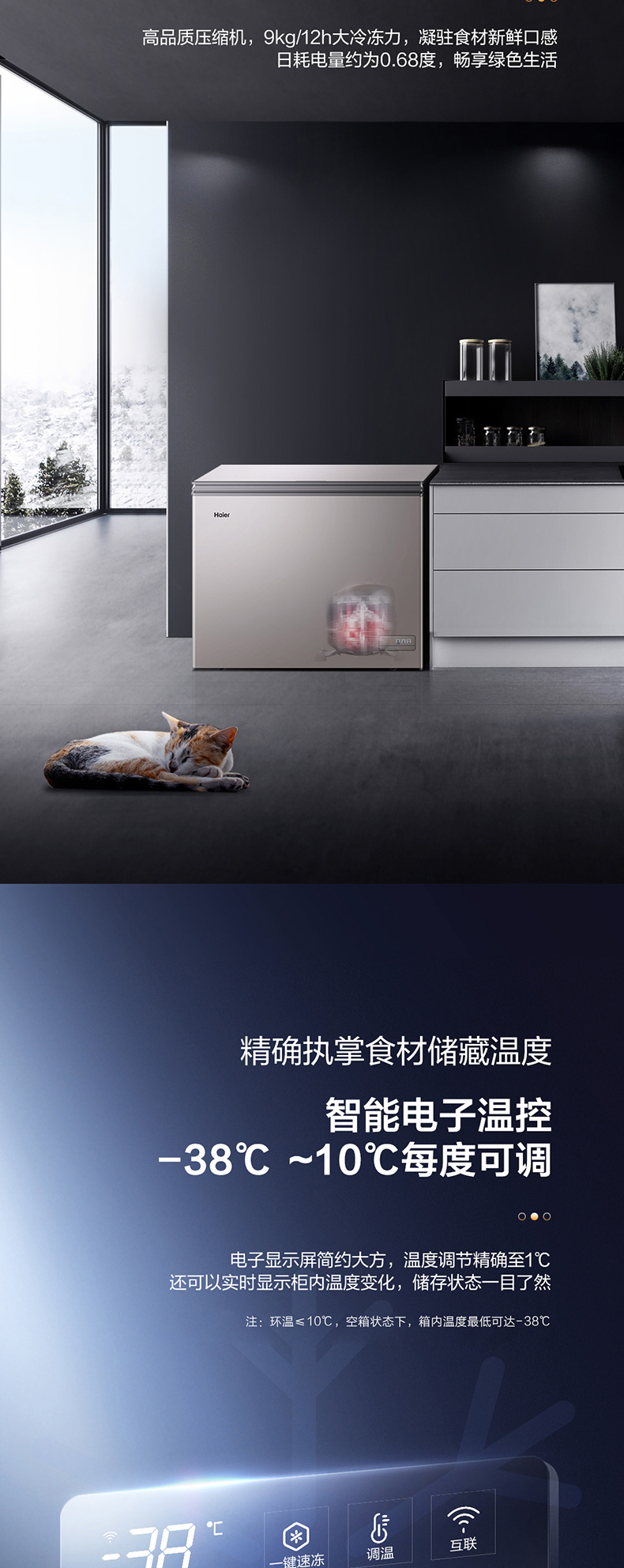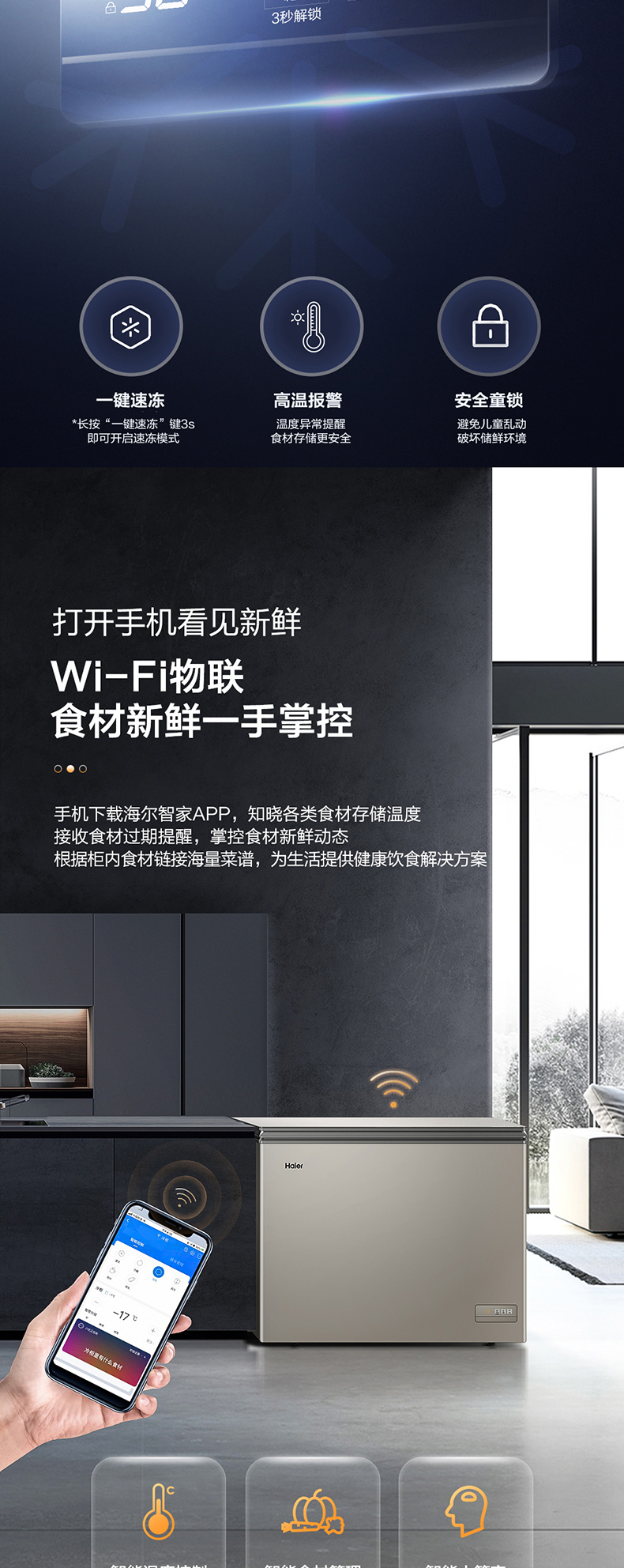 海尔(Haier)180升商用家用卧式一级能效风冷无霜冷柜 -38℃深冷速冻 冷藏冷冻转换 智能控温BC/BD-180WEGU1