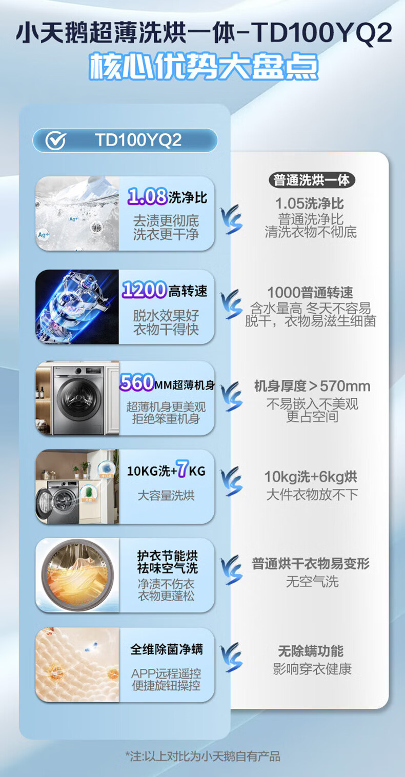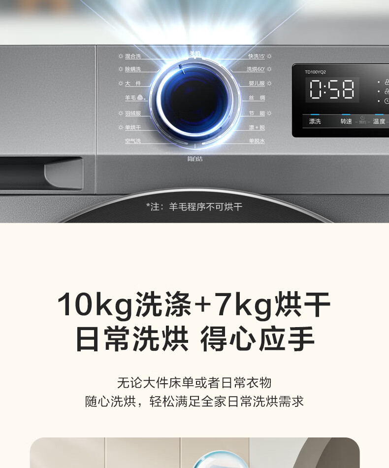 小天鹅(LittleSwan)洗衣机全自动滚筒 升级款10公斤大容量带烘干空气洗 1.08洗净比除螨智能家电家用变频YQ2