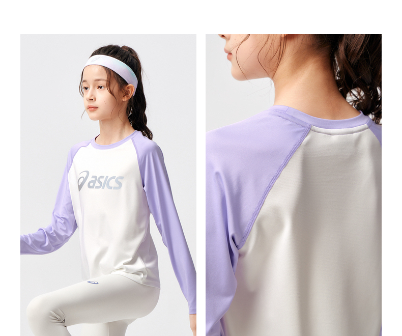 ASICS/亚瑟士童装24春夏速干柔软透气针织插肩男女儿童运动长袖T