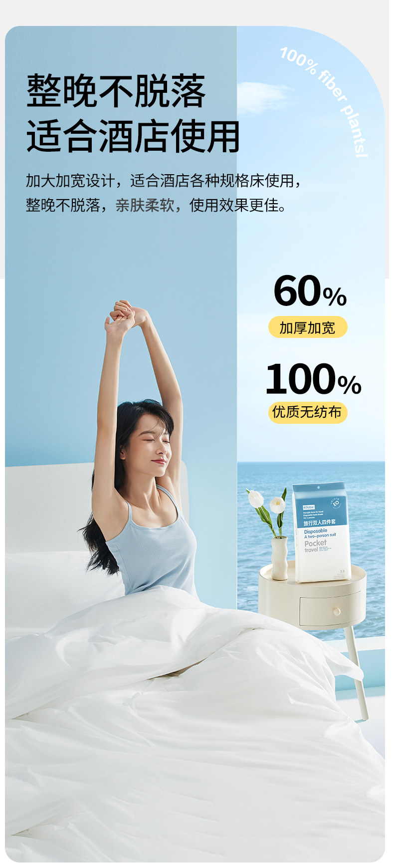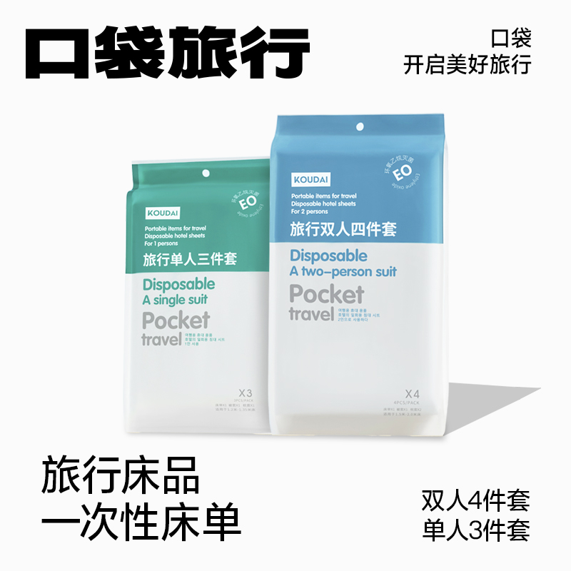 【一次性四件套】旅行、出差,酒店用,炫彩双人四件套单人三件套