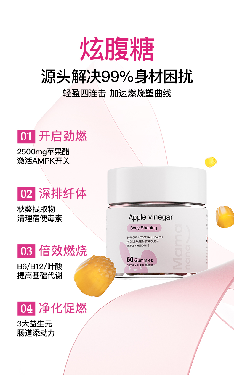 mamanana红脸兔苹果醋软糖健身无糖阻断剂润肠排宿便果蔬膳食纤维