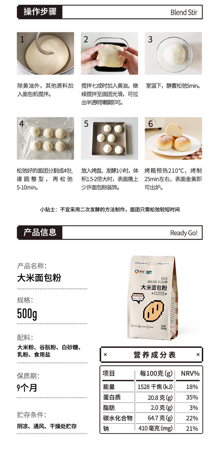 新良全麦面包粉 烘焙原料 小麦面粉 粗粮 高筋粉 原装500g 原装