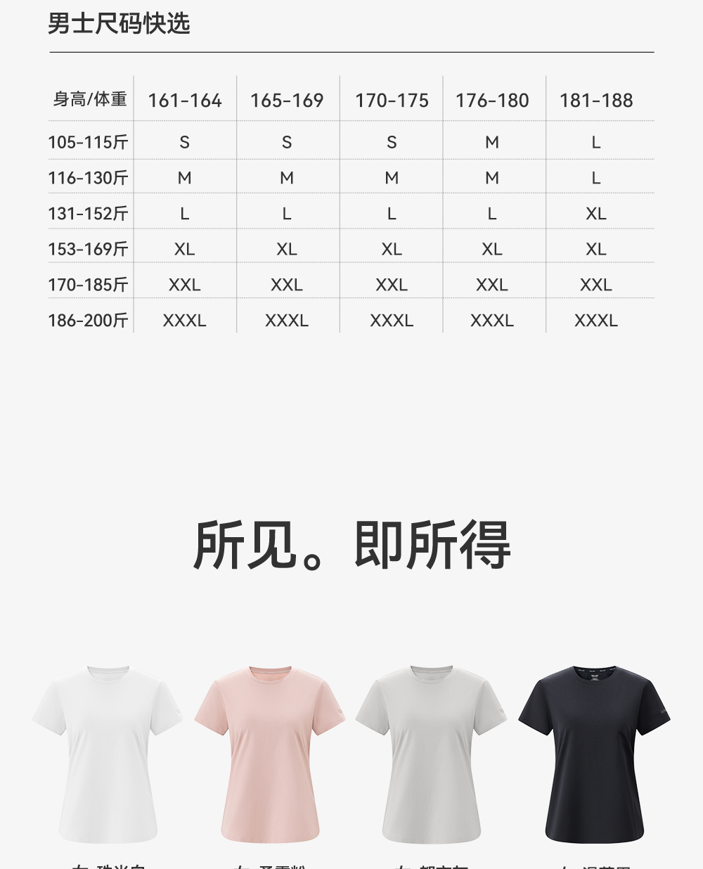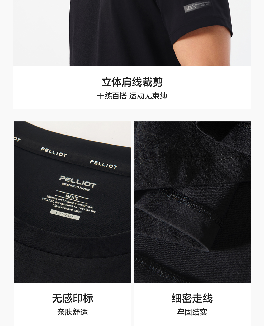 伯希和户外速干T恤女圆领短袖抗菌跑步健身排汗登山徒步速干衣男