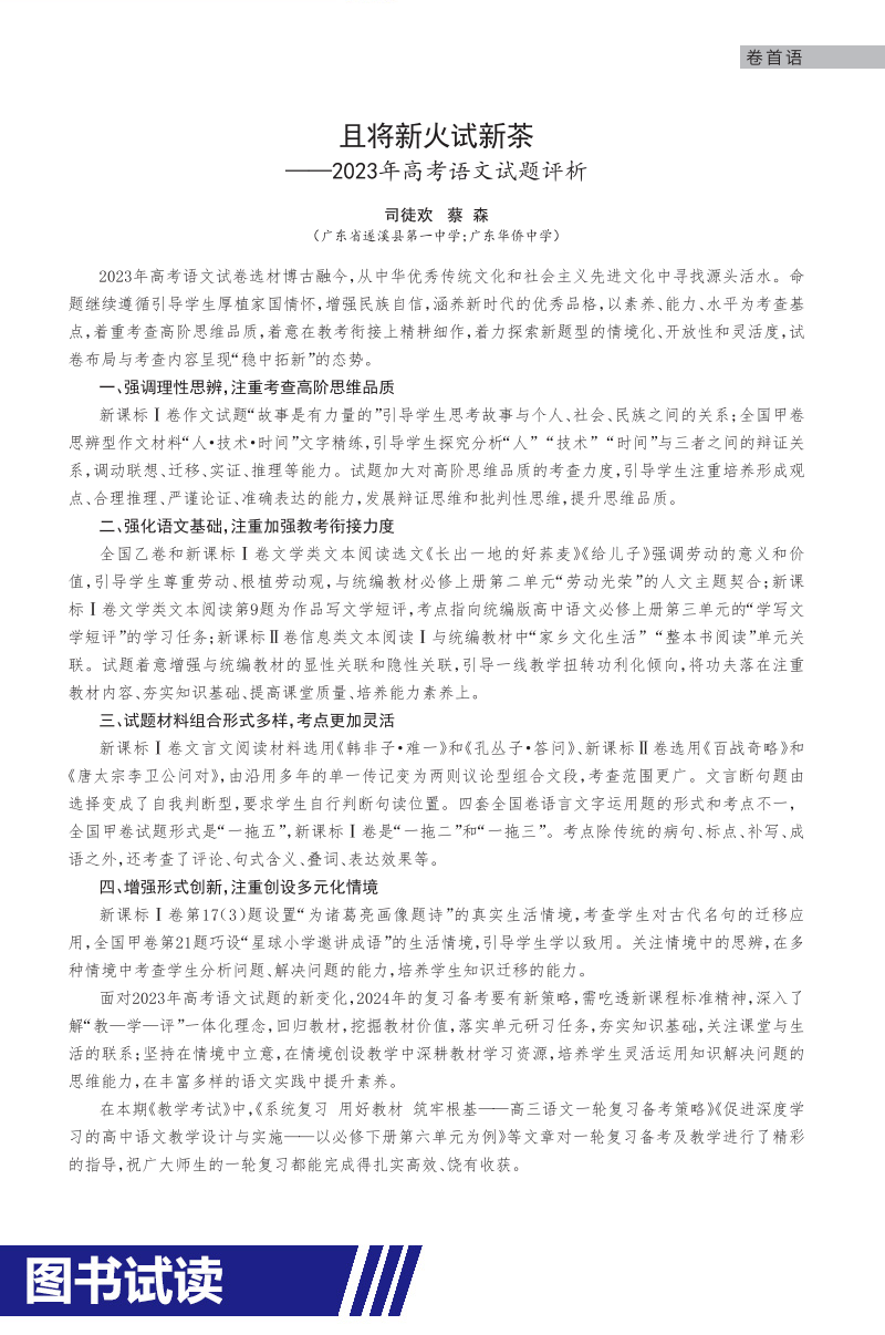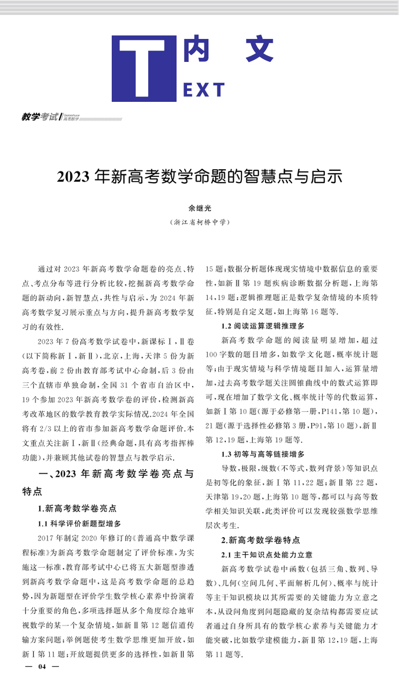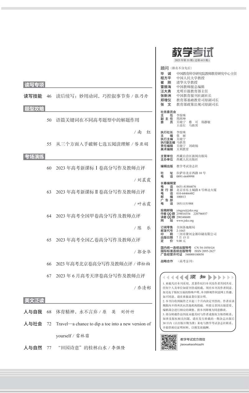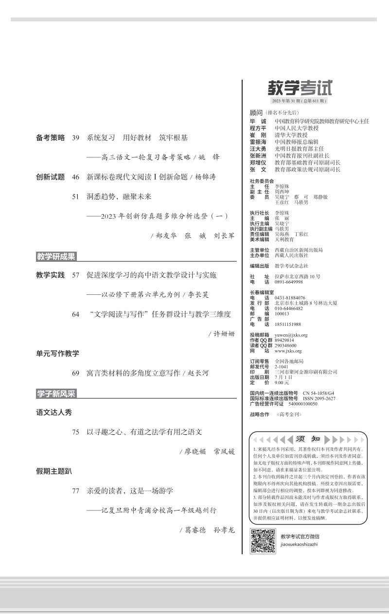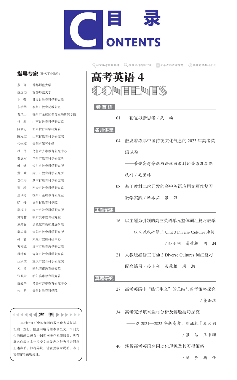2023教学考试杂志 高考 第4期 高考核心考点精讲 上 2024高考适用