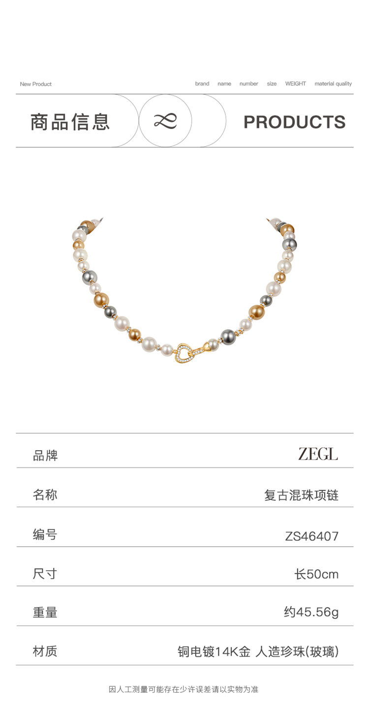 ZEGL法式秋冬人造珍珠项链毛衣链女长款轻奢小众高级感气质锁骨链