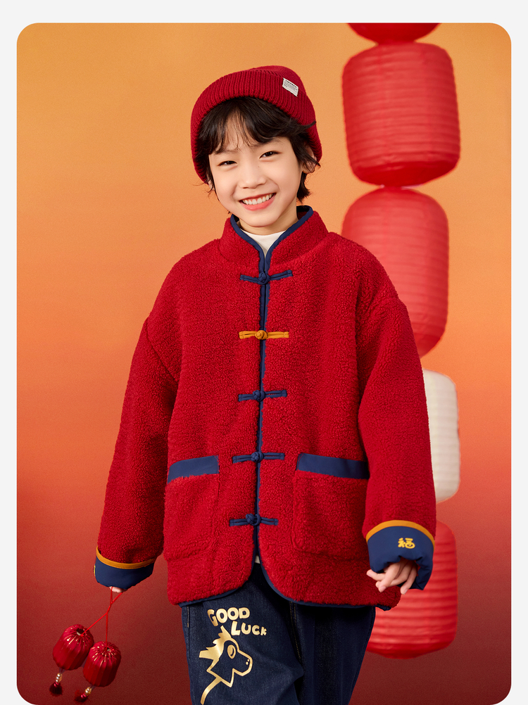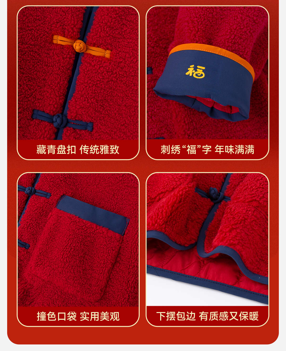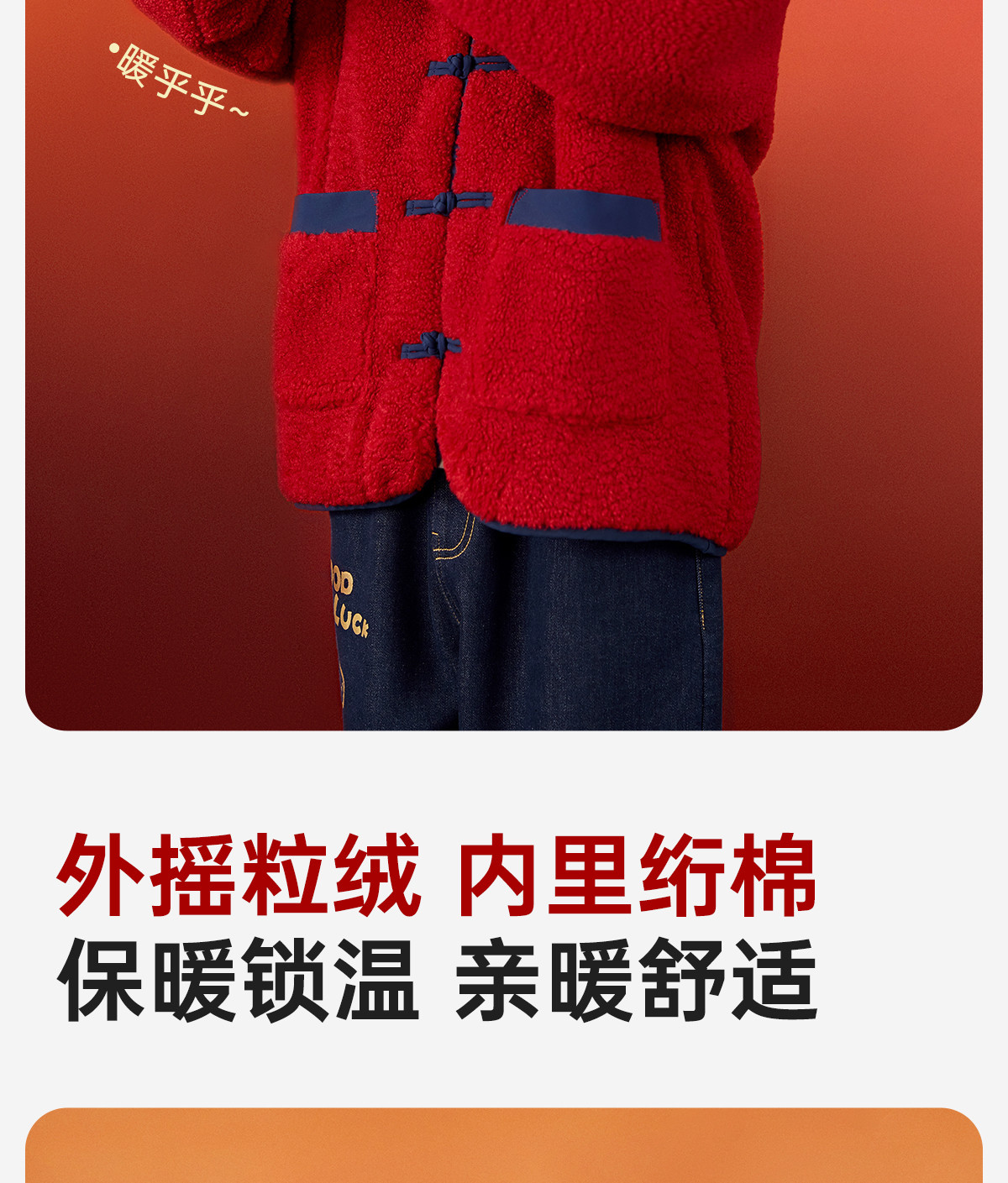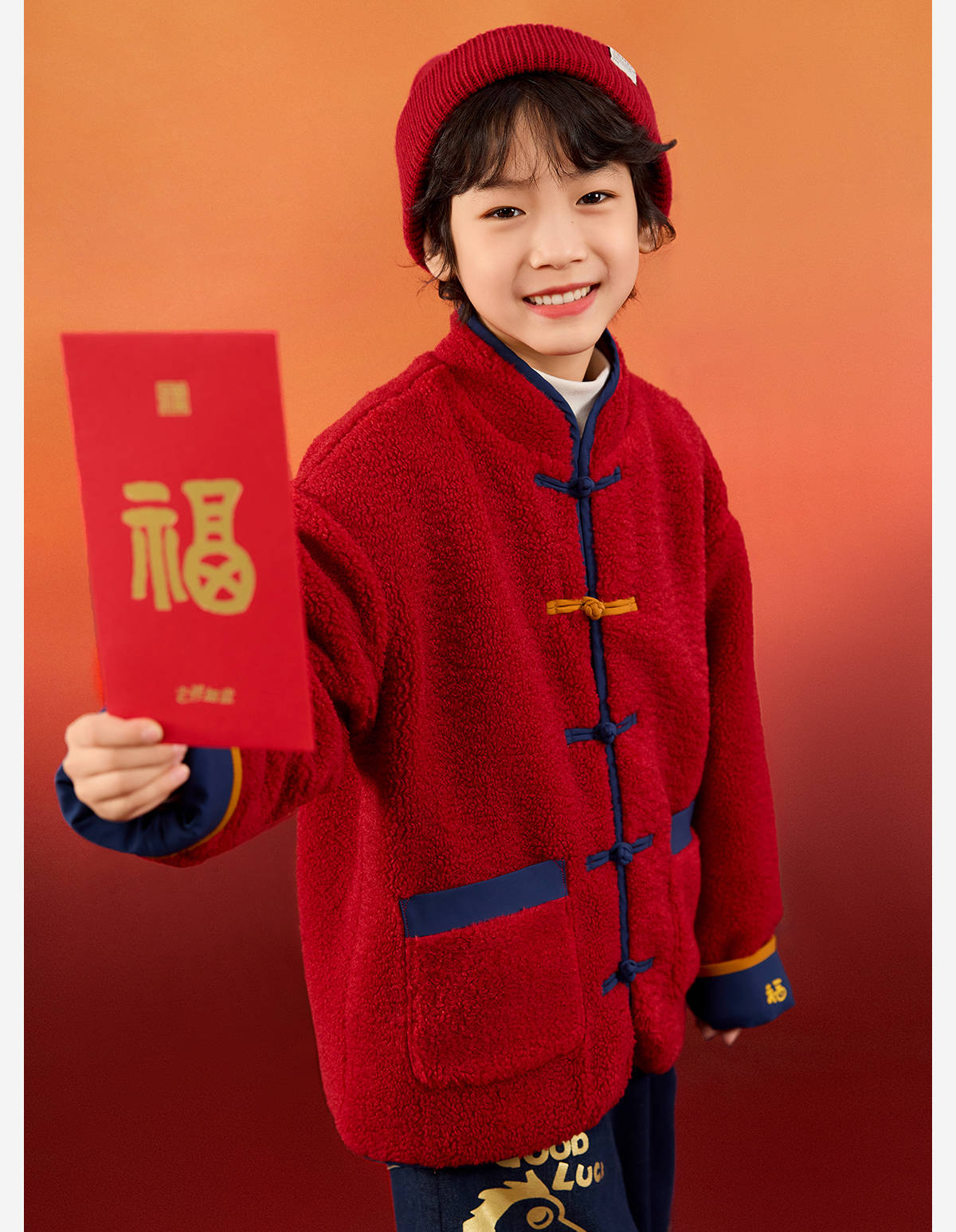 Bluem中大童外套冬季儿童冬装男童女童上衣男孩衣服唐装年服中式【2601年服专场】