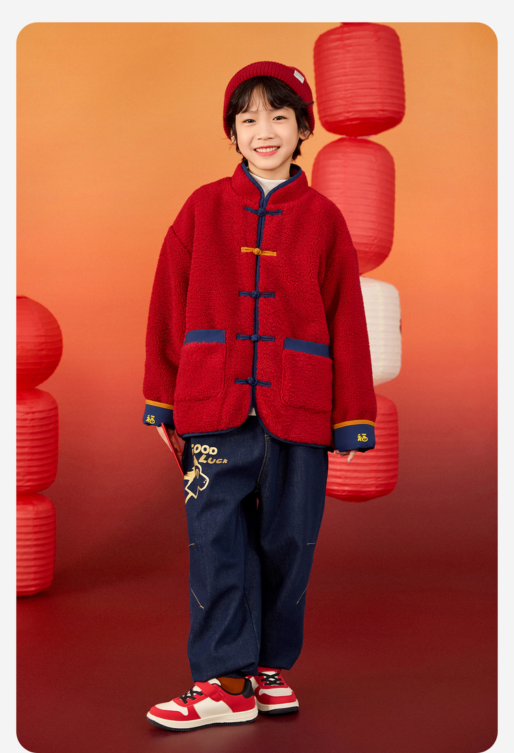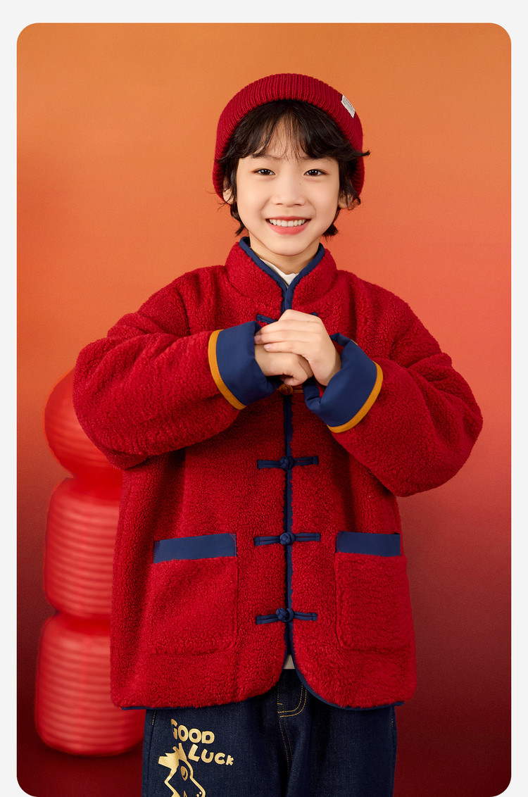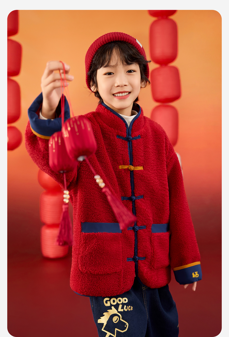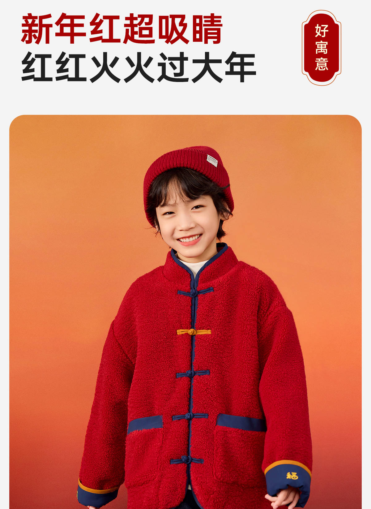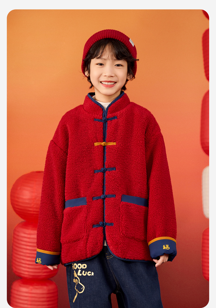 Bluem中大童外套冬季儿童冬装男童女童上衣男孩衣服唐装年服中式【2601年服专场】