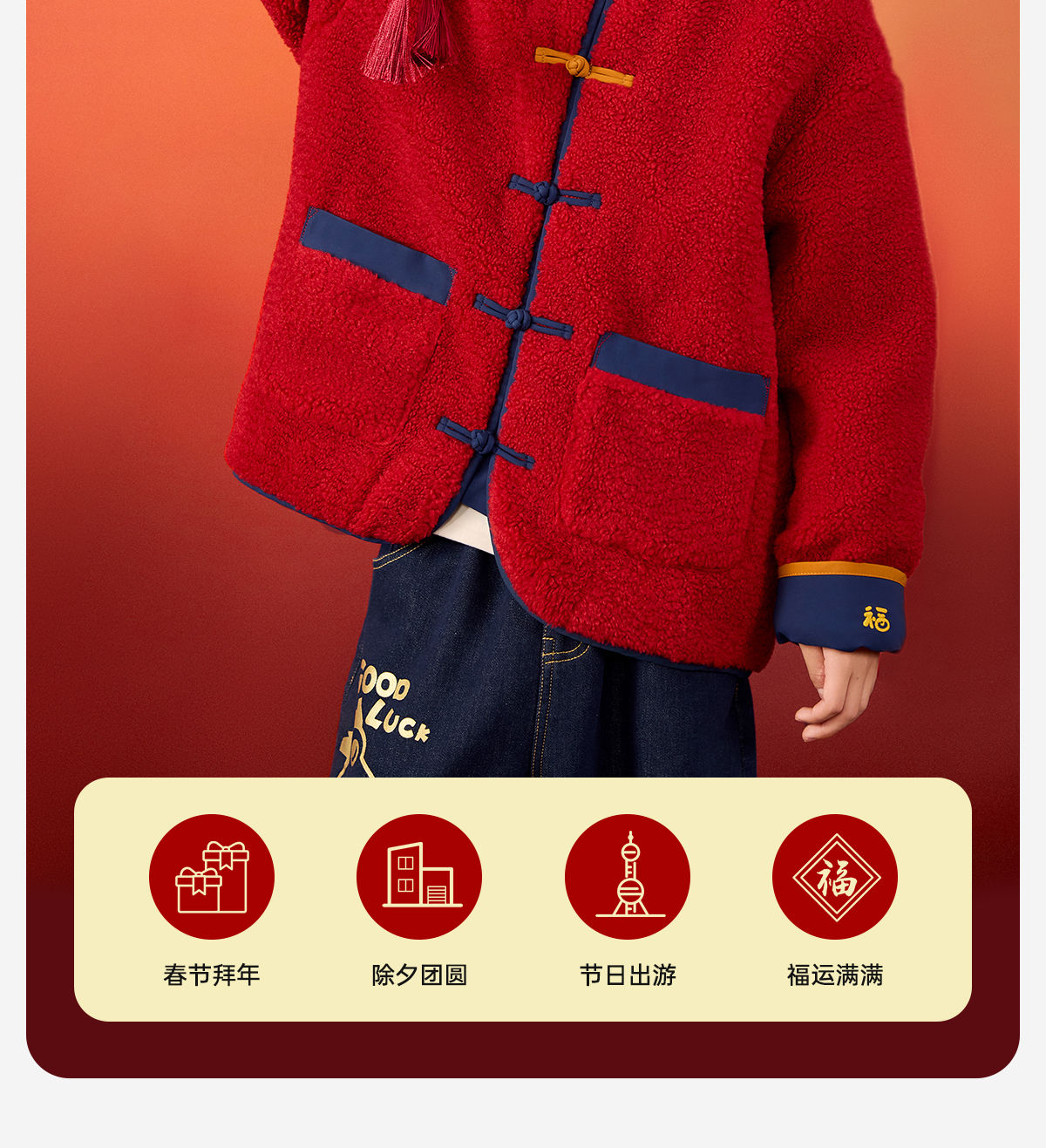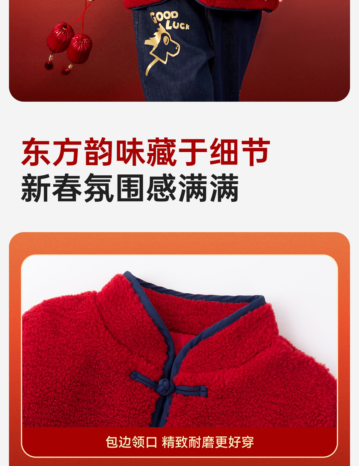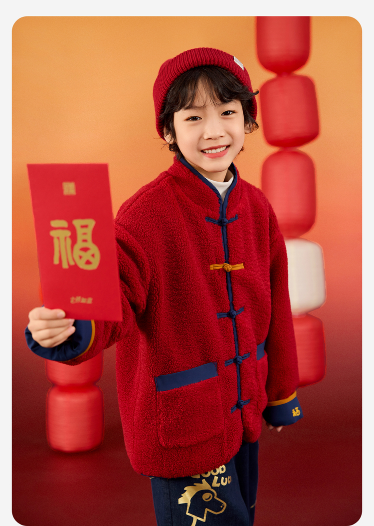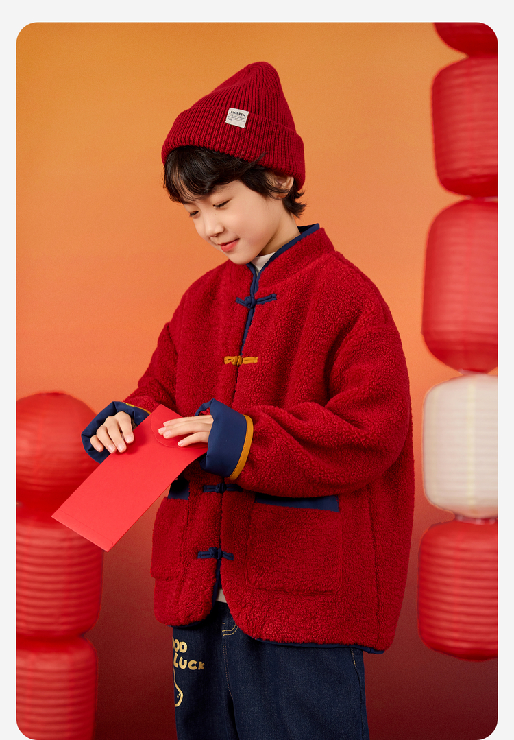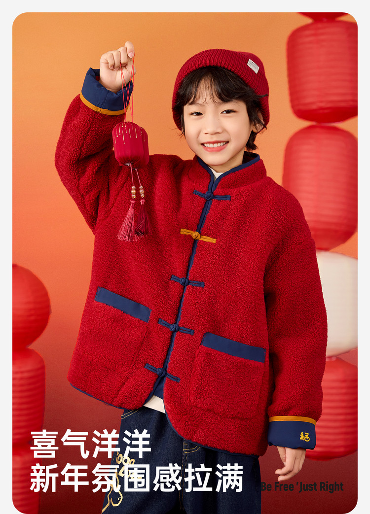 Bluem中大童外套冬季儿童冬装男童女童上衣男孩衣服唐装年服中式【2601年服专场】