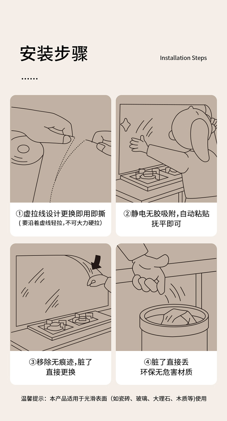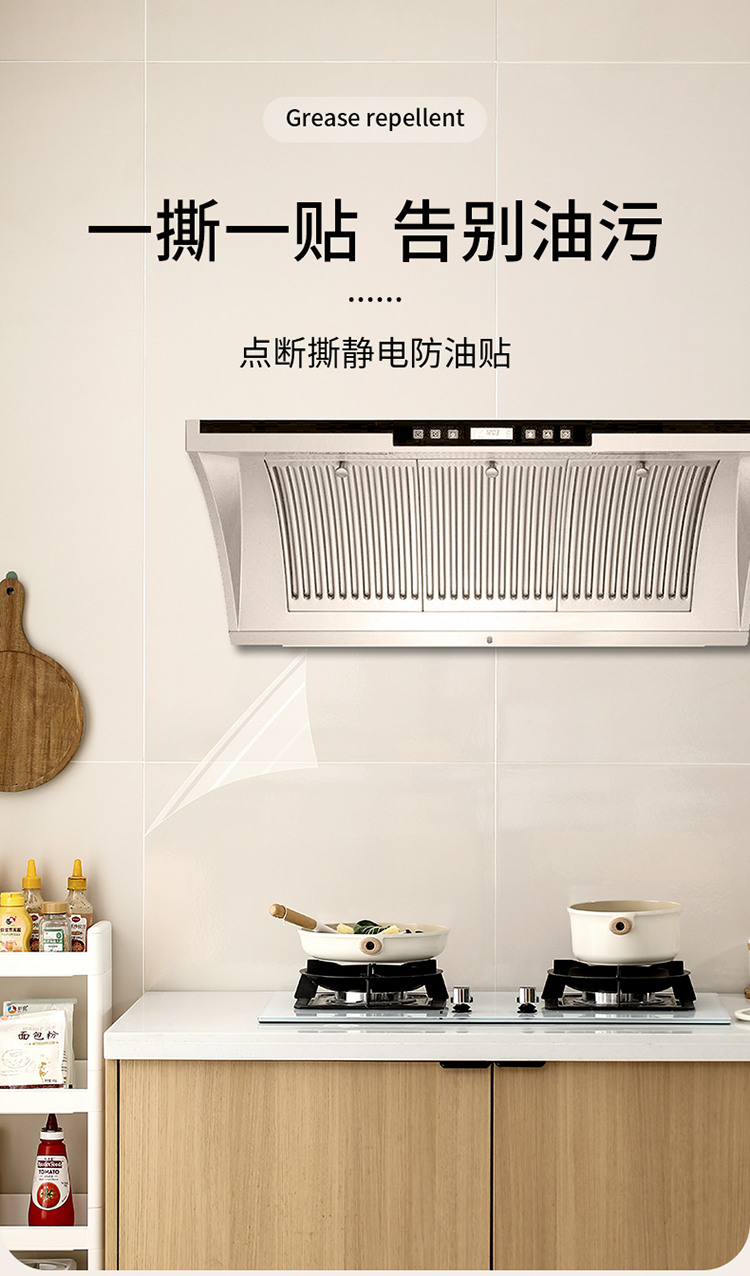 FaSoLa厨房防油贴纸点断式灶台瓷砖静电膜透明耐高温防水自粘墙贴