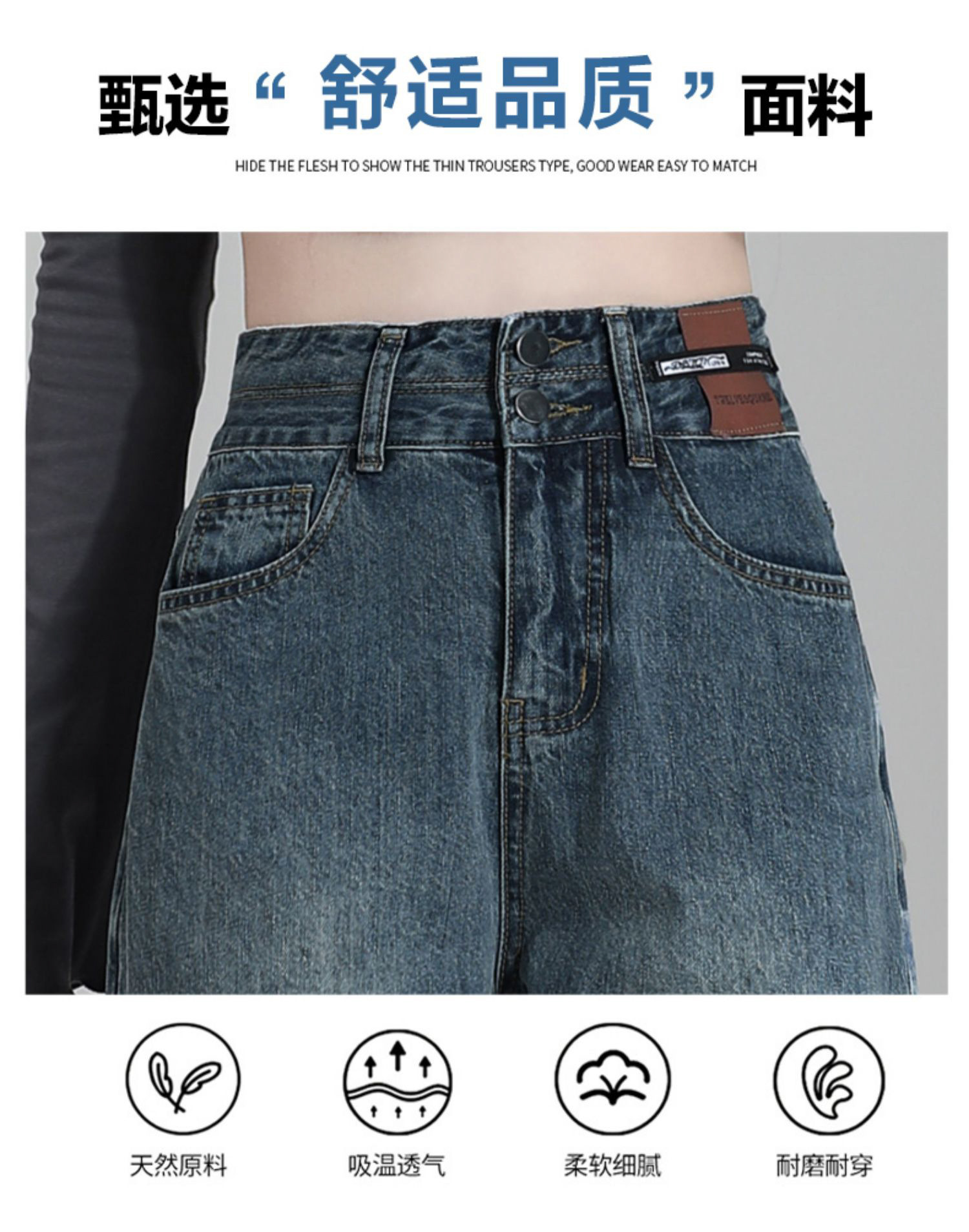 【柔软舒适耐磨耐造❗️实力遮肉显瘦显高】加绒直筒阔腿牛仔裤女春秋季2026新款爆款小个子高腰宽松裤子冬季。jb