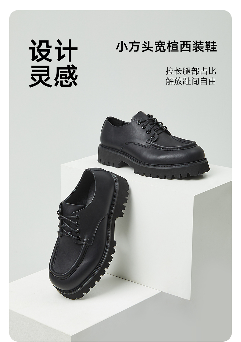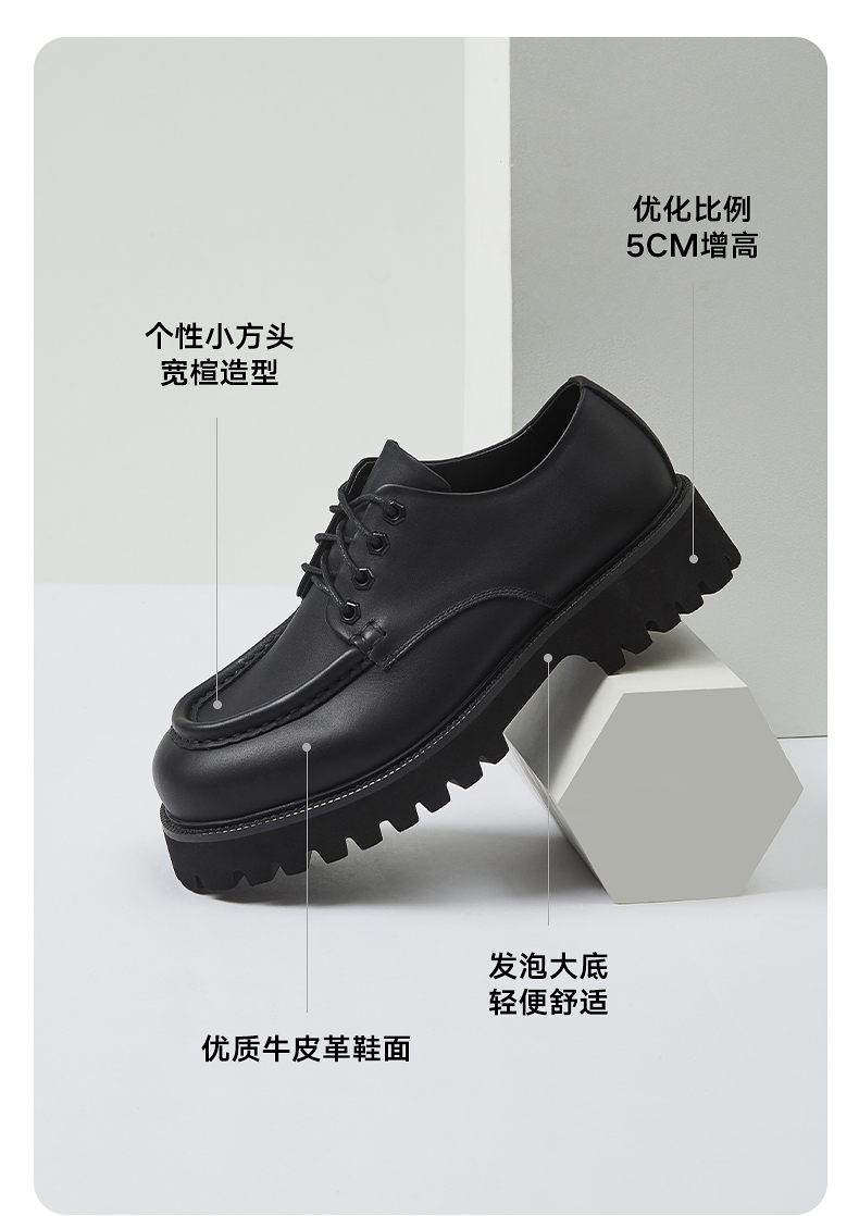 GXG通勤男鞋商务鞋男牛皮厚底正装系带皮鞋