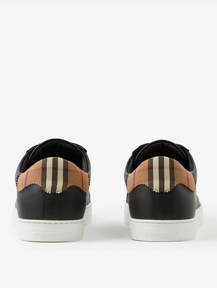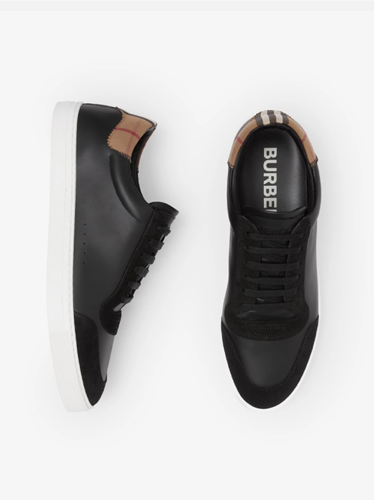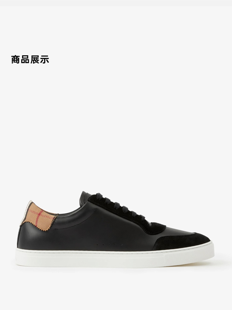 BURBERRY 巴宝莉 男士皮革、麂皮拼 Vintage 格纹棉质运动鞋 黑色 8061752 A1189