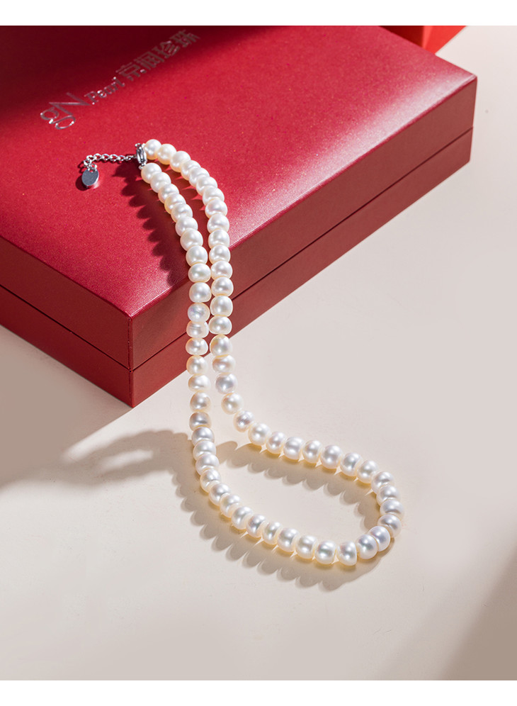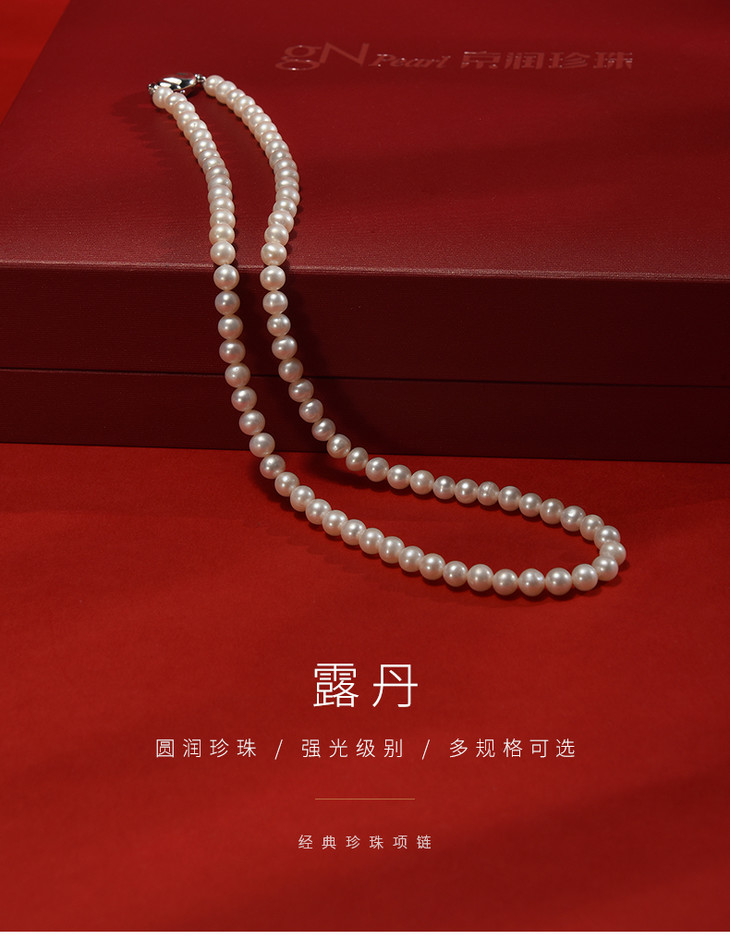 【赠丝巾】京润珍珠缘梦淡水珍珠 7.3-8.3mm 馒头形 圆润细腻 强光级别