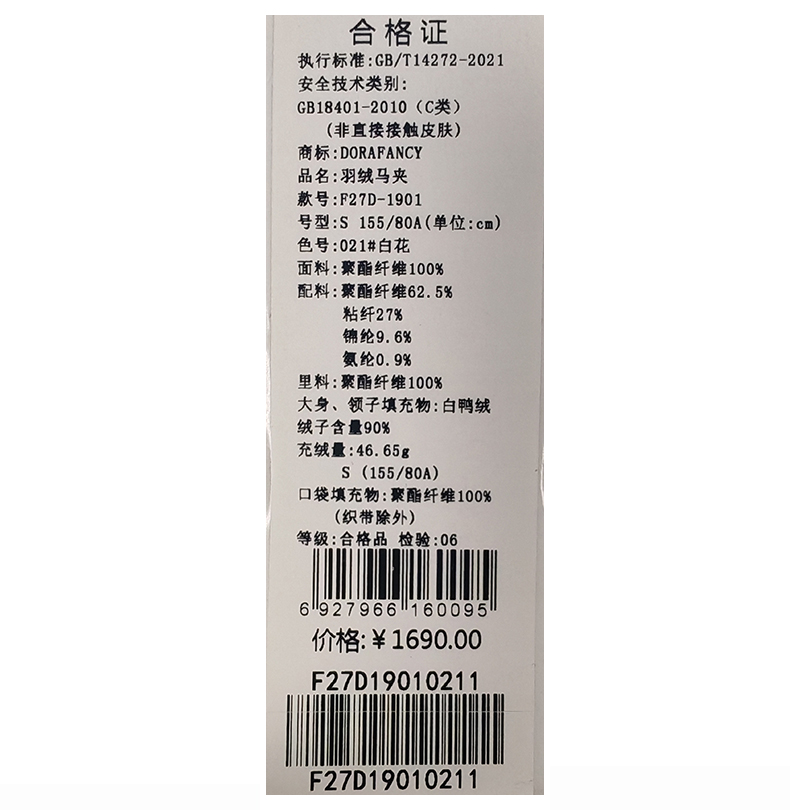 朵拉梵西羽绒马甲F27D1901