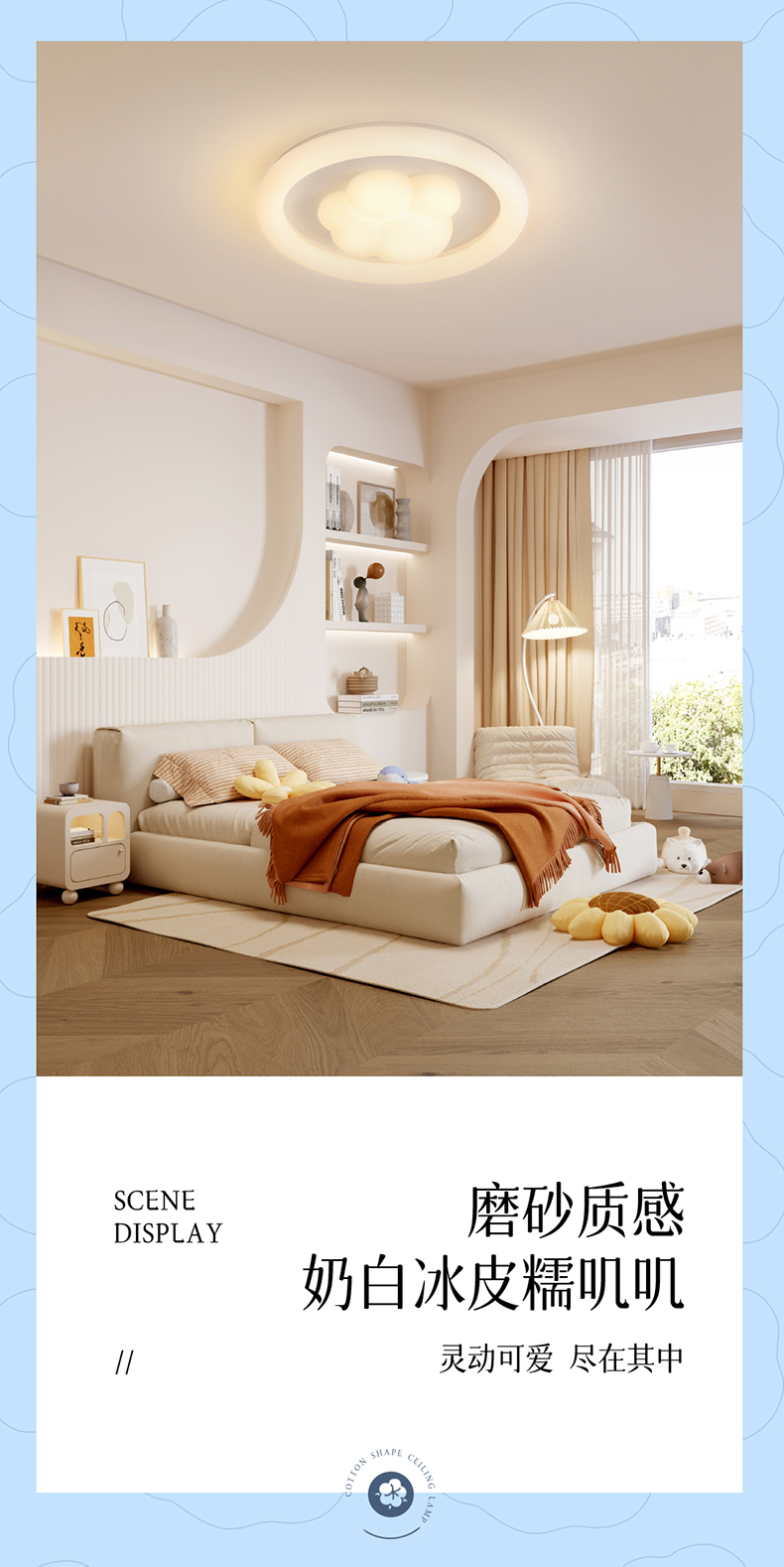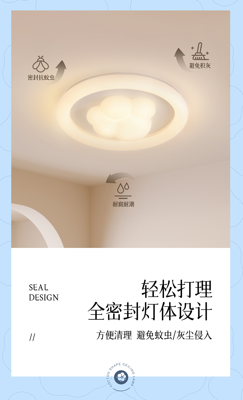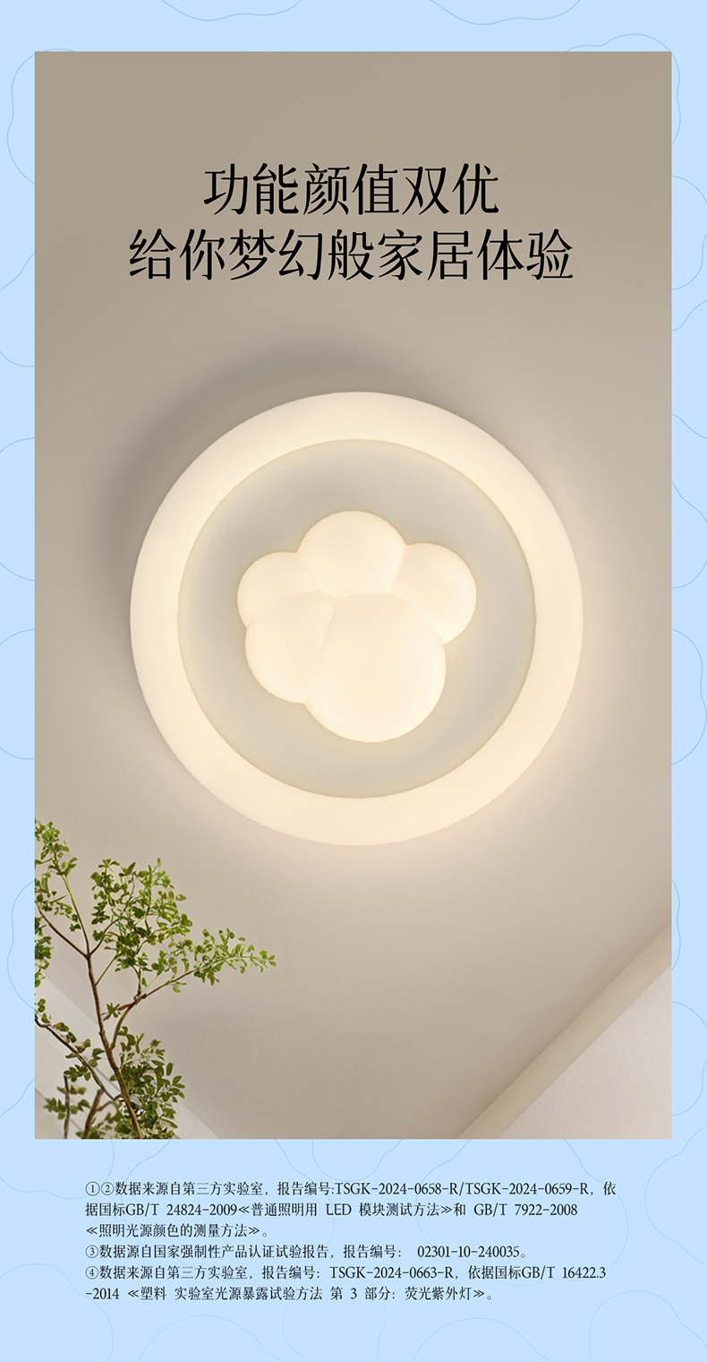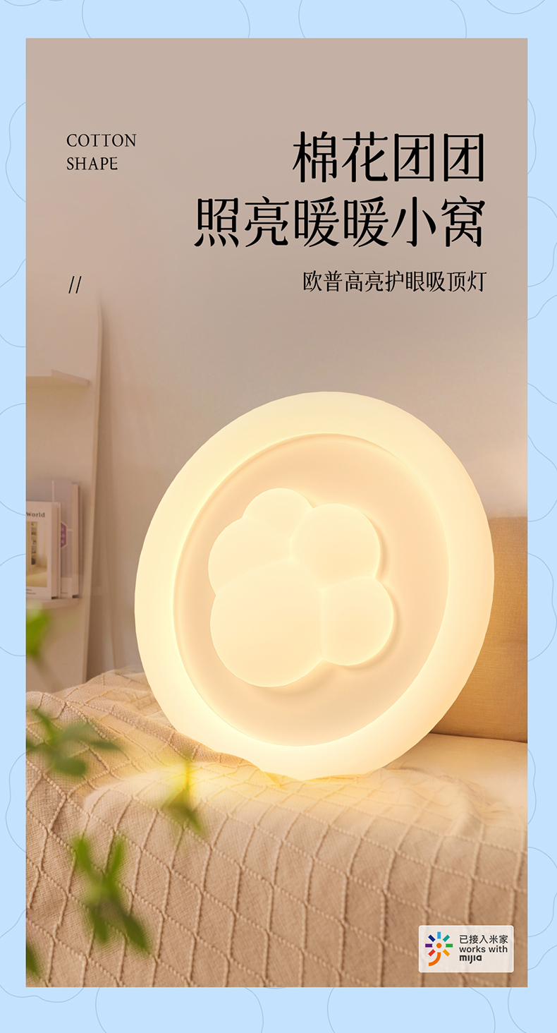 欧普(OPPLE)小团团卧室奶油风圆形儿童房猫爪吸顶灯