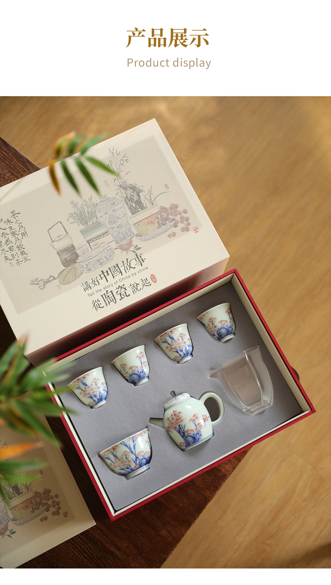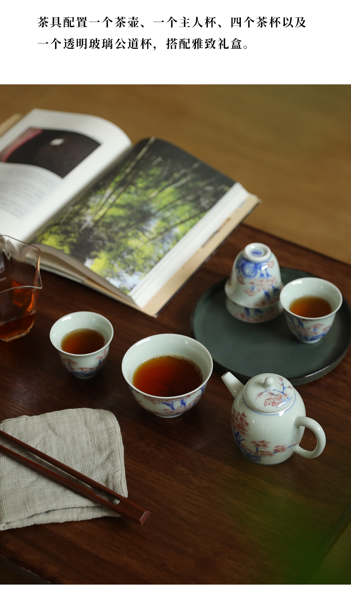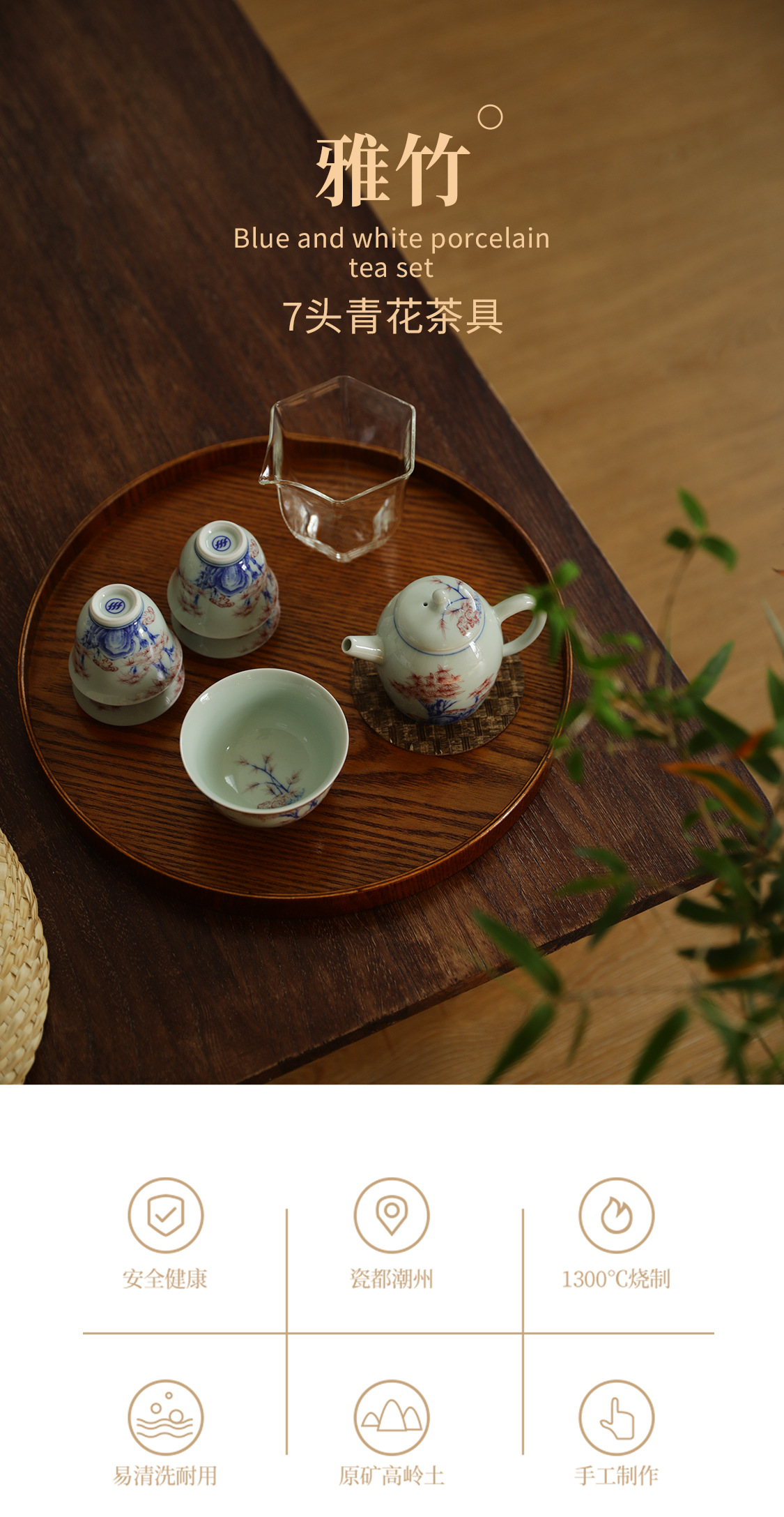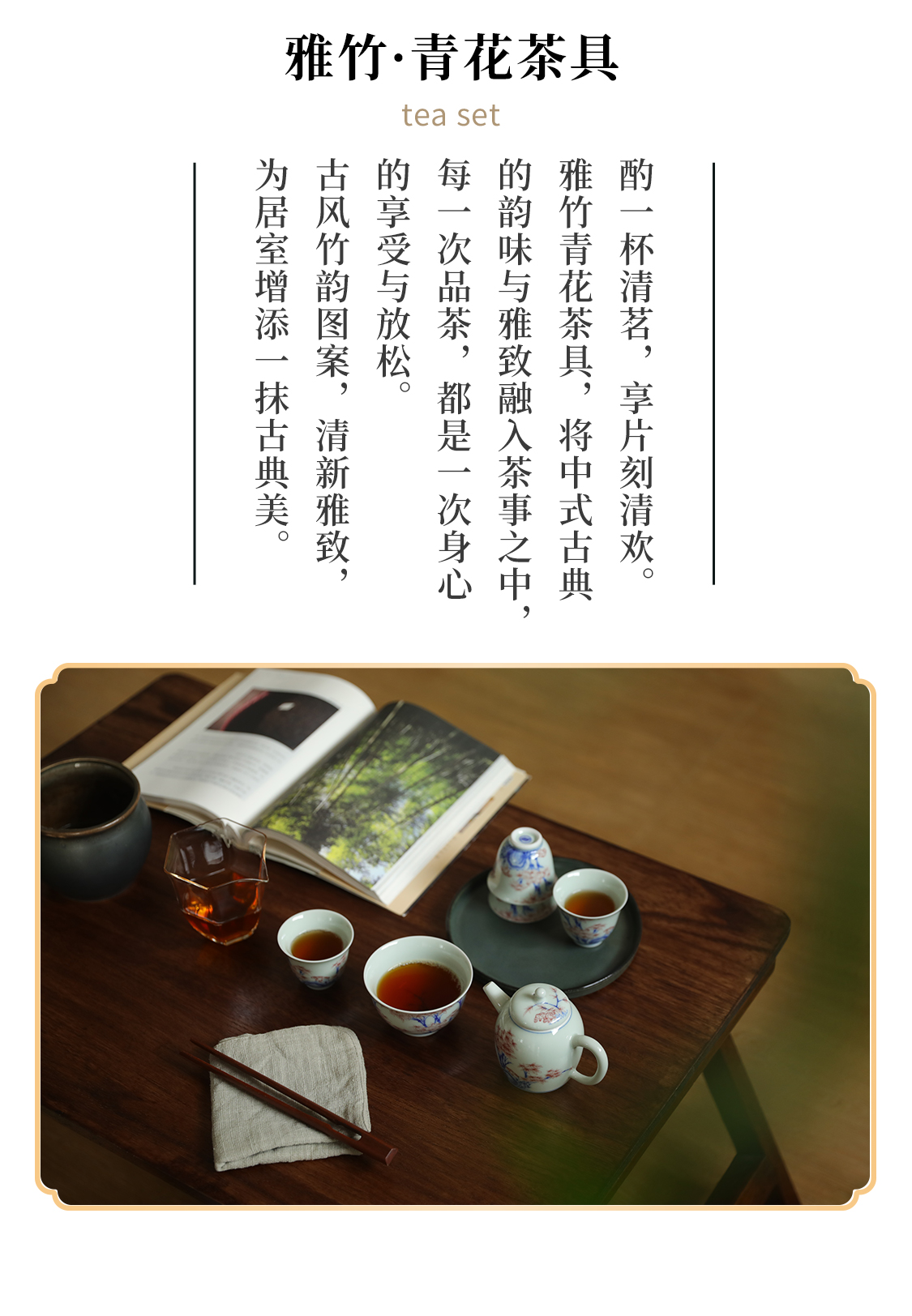 7头雅竹青花茶具