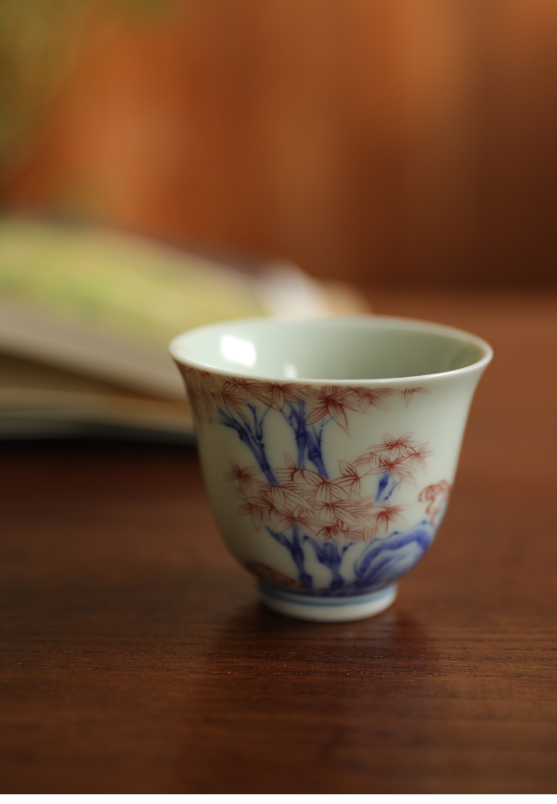 蓝宝牡丹会议盖杯 新心兰盖杯骨瓷茶杯