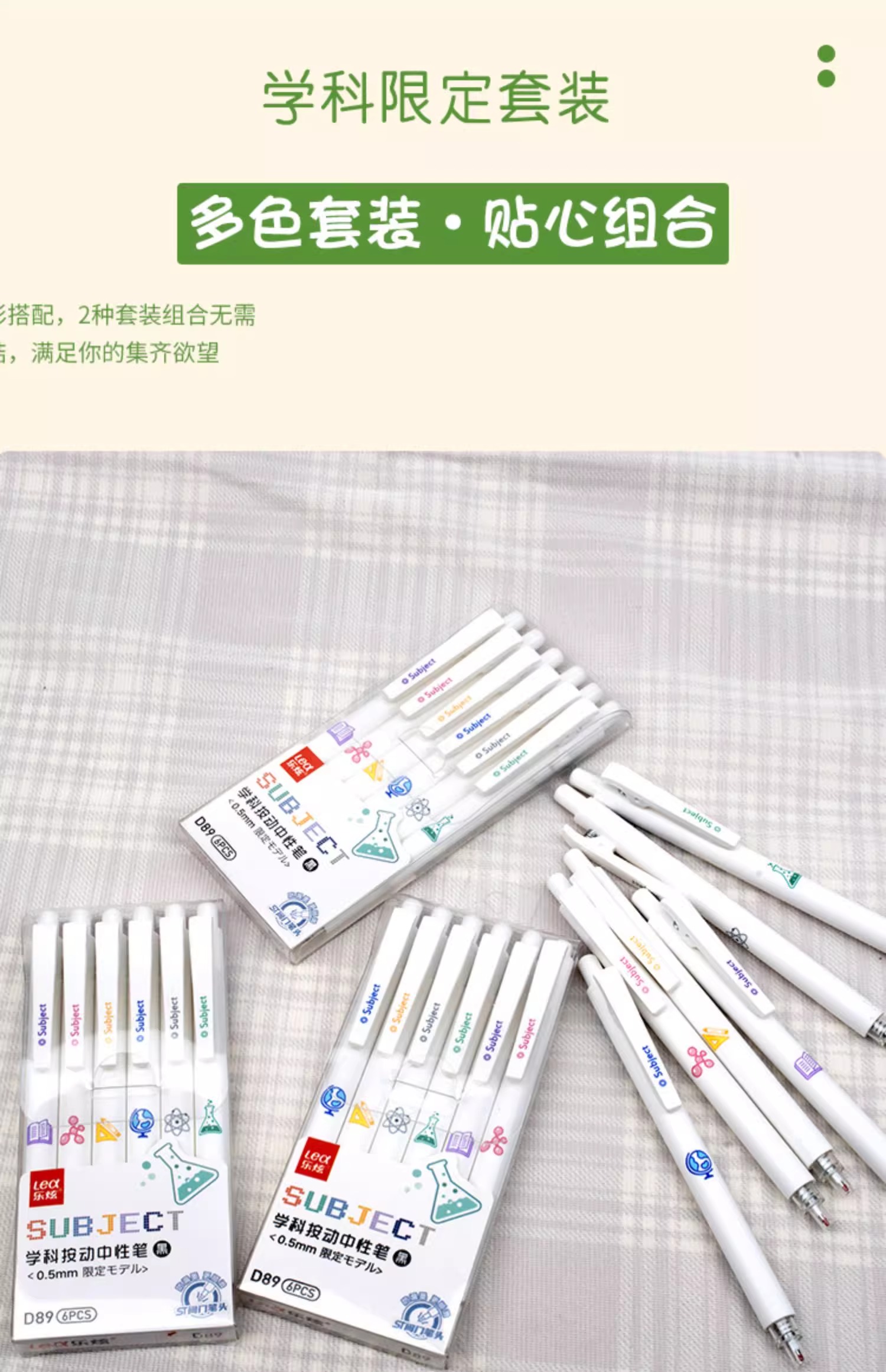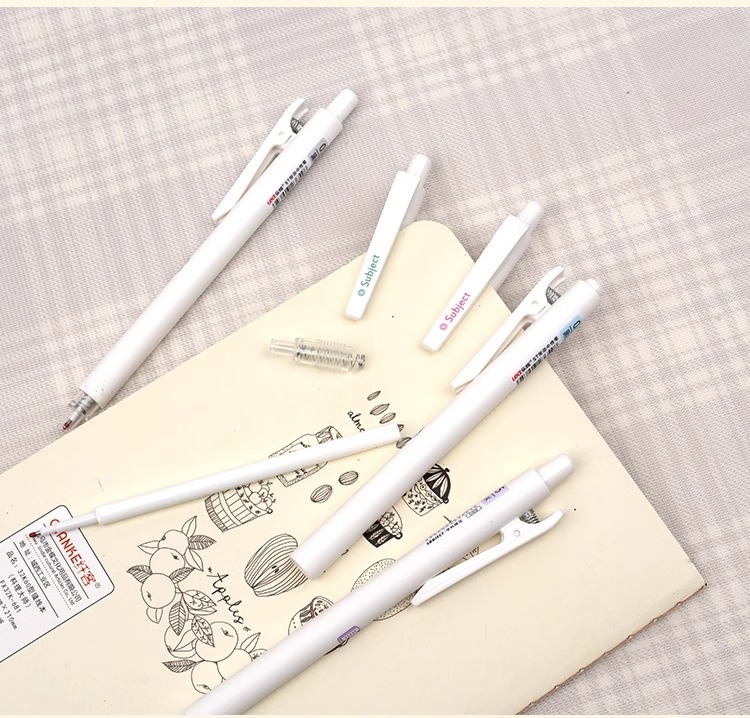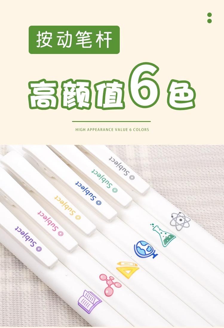 开学季福利!【6支送20支笔芯】乐炫学科按动中性笔ST阀门笔头ins简约白色学生刷题笔中性笔黑色