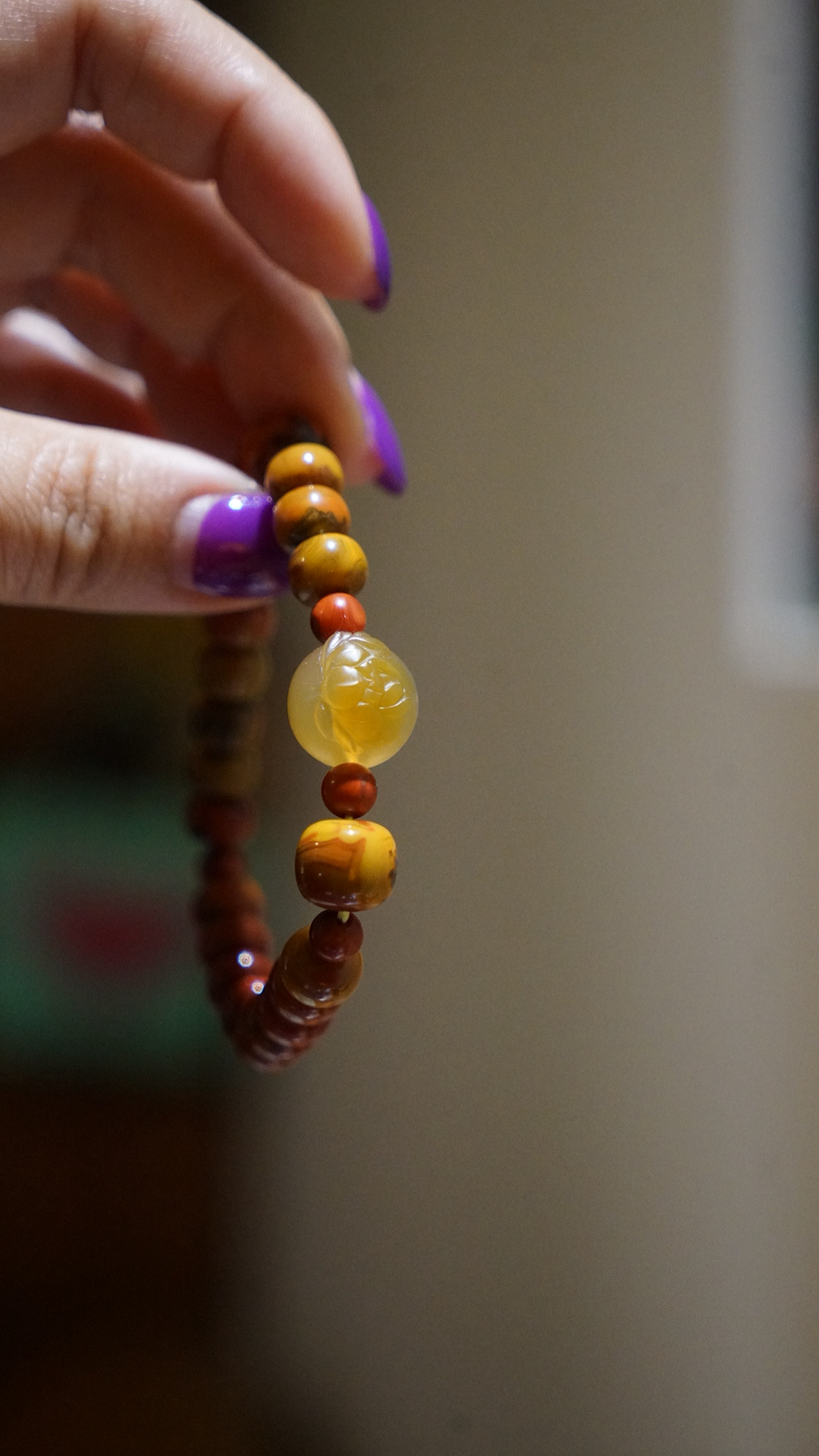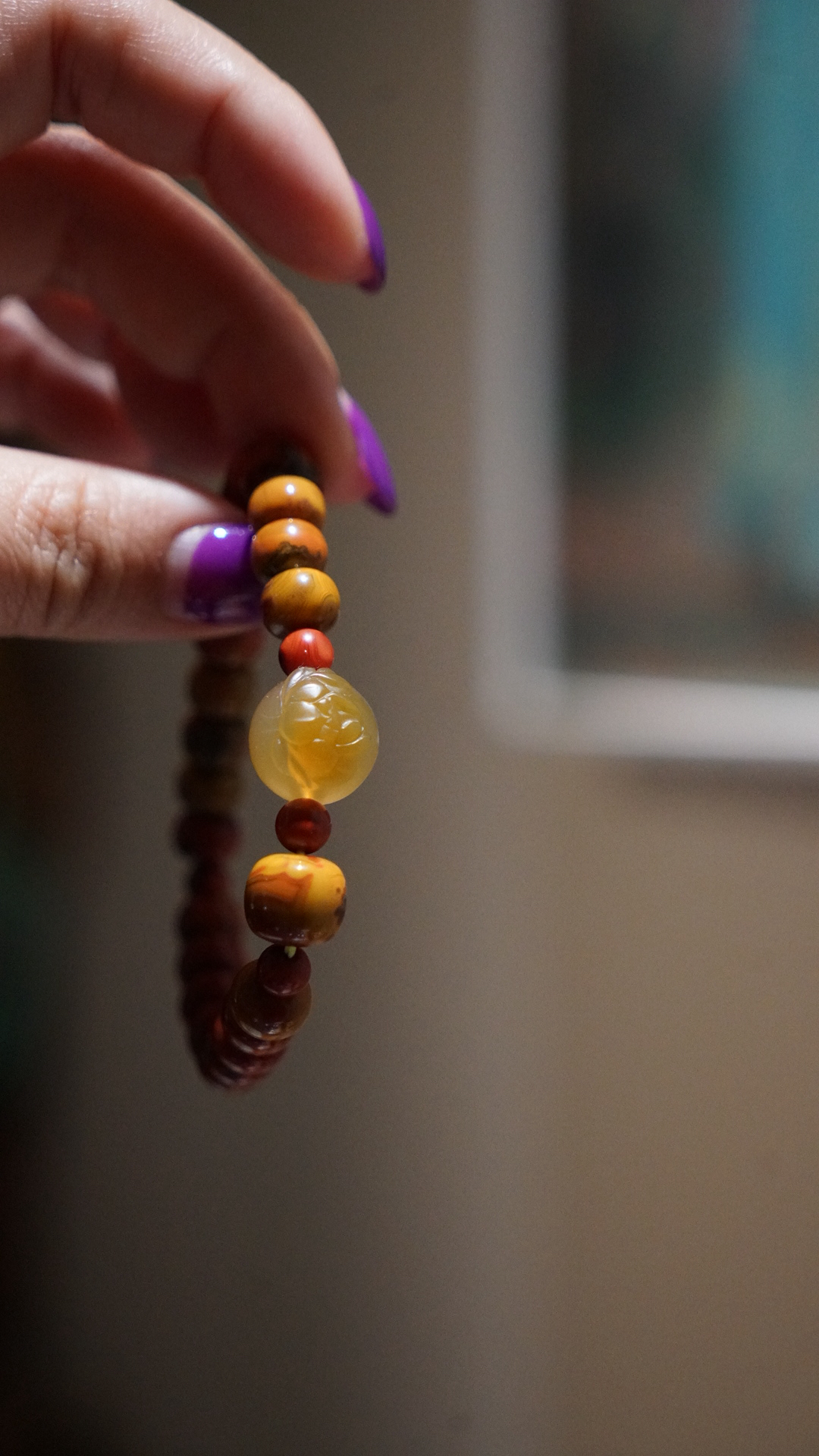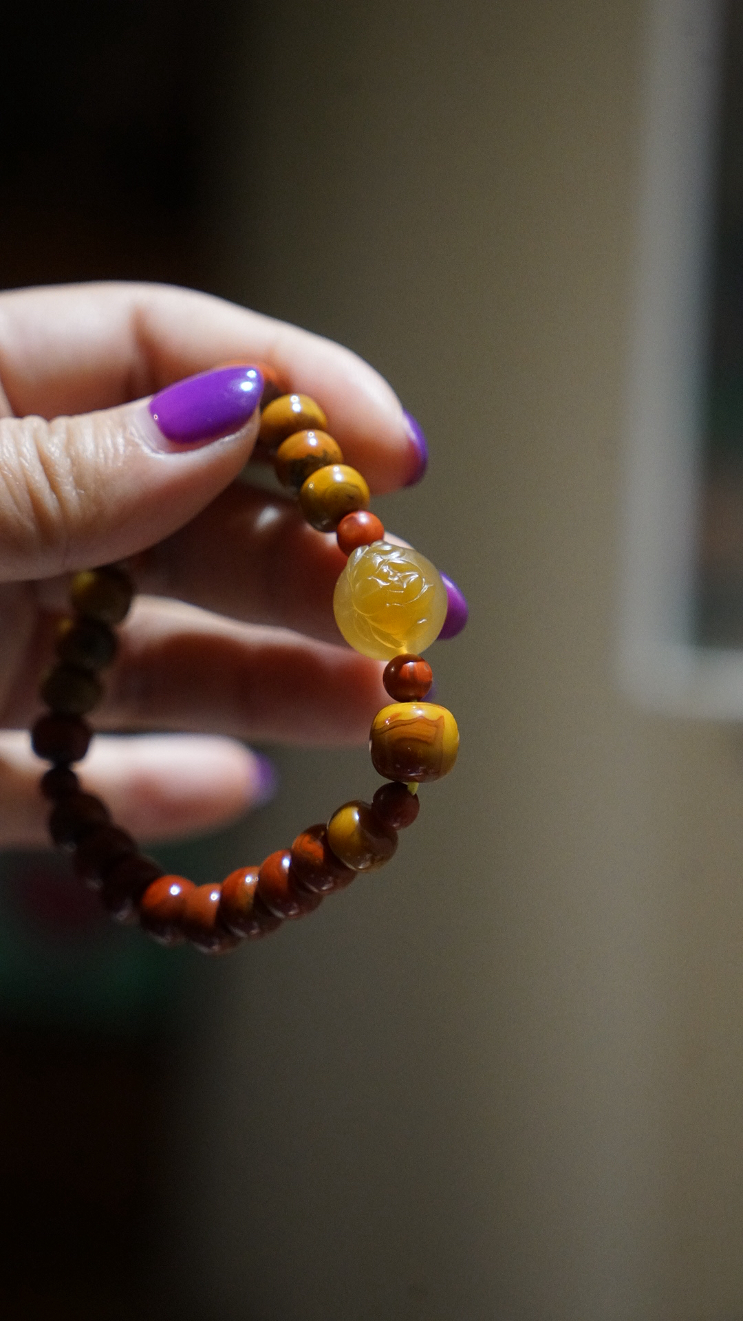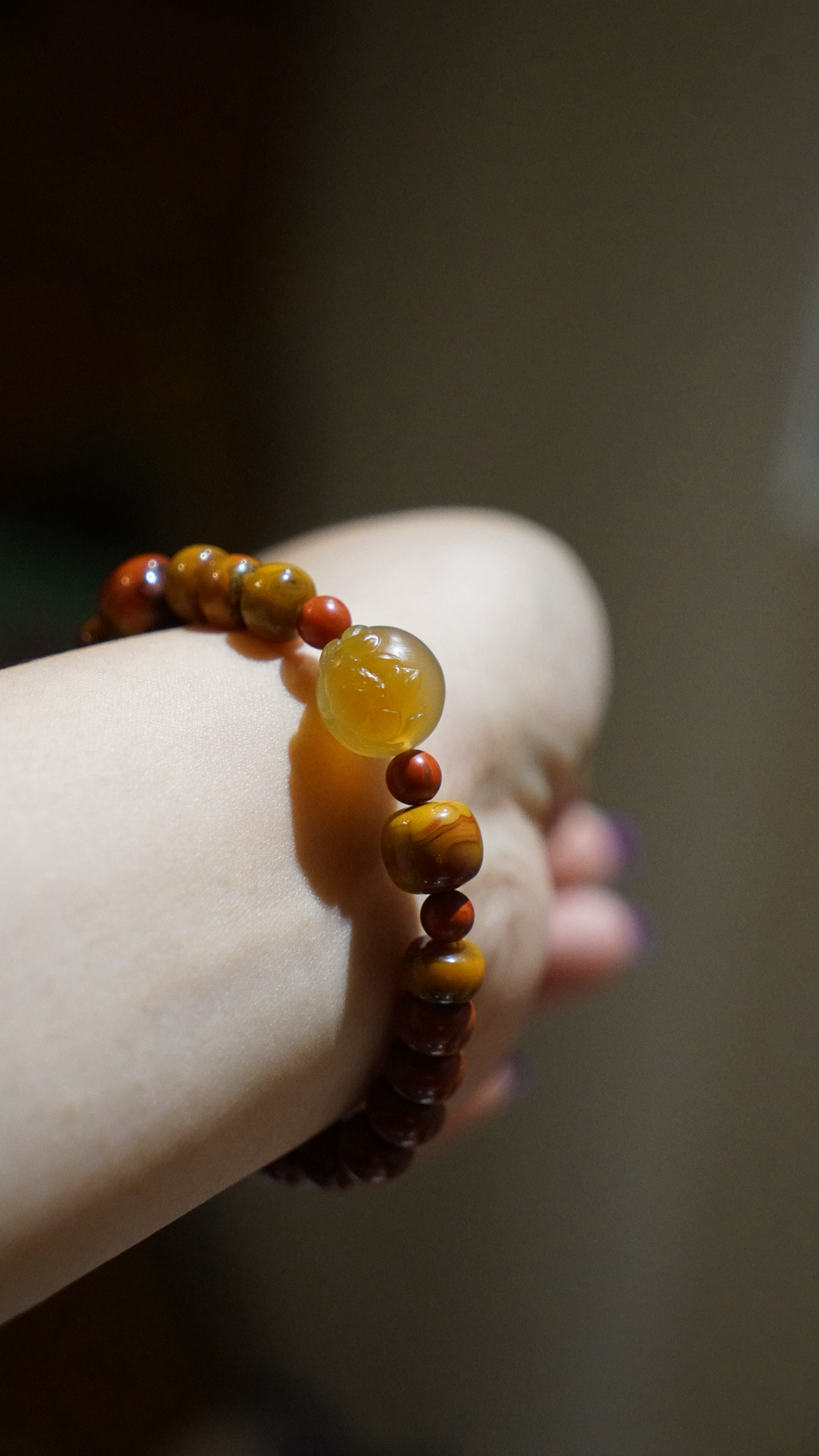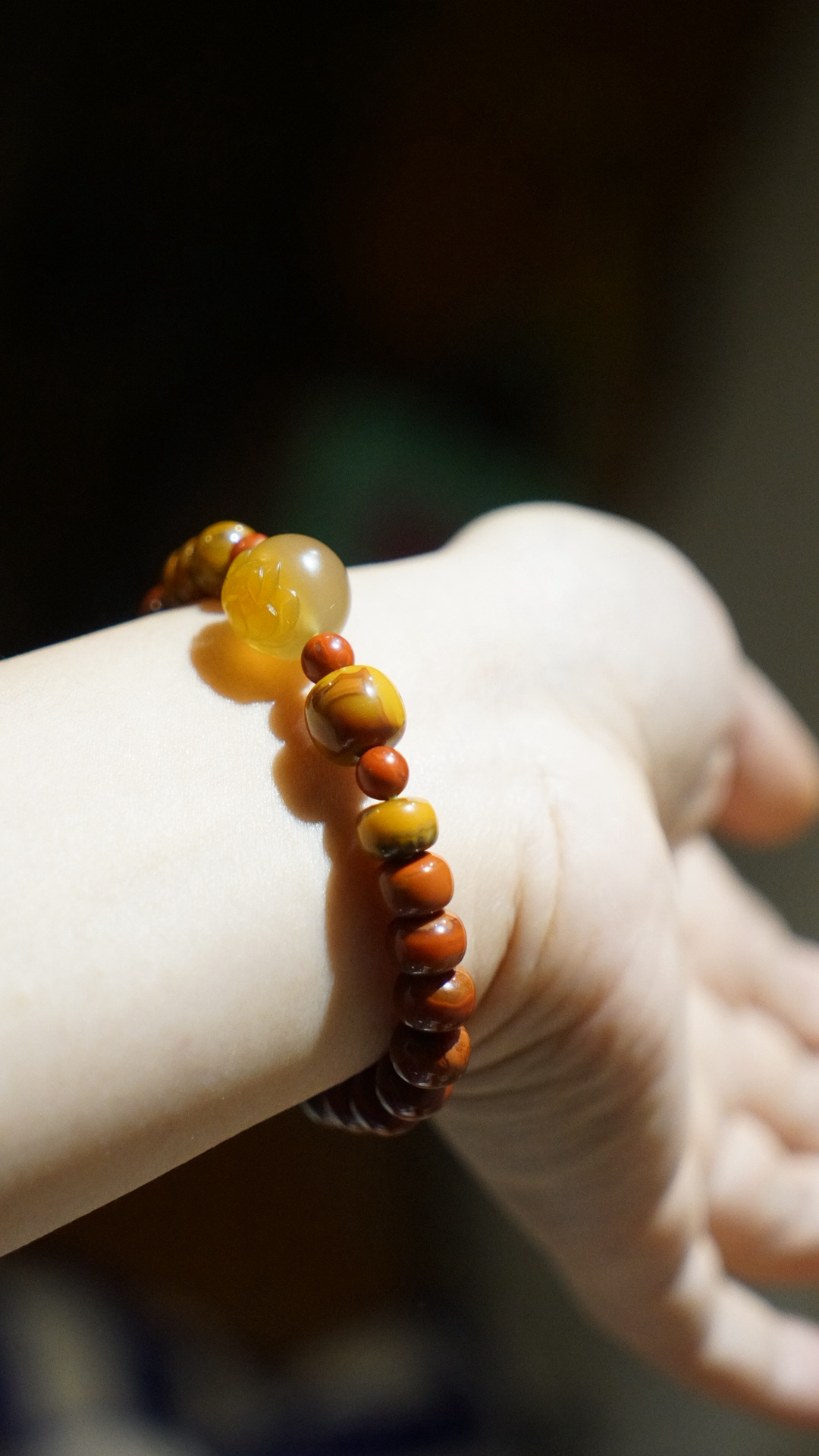 精品战国红魅力无穷:红黄相生纳吉,玉韵天成承意。