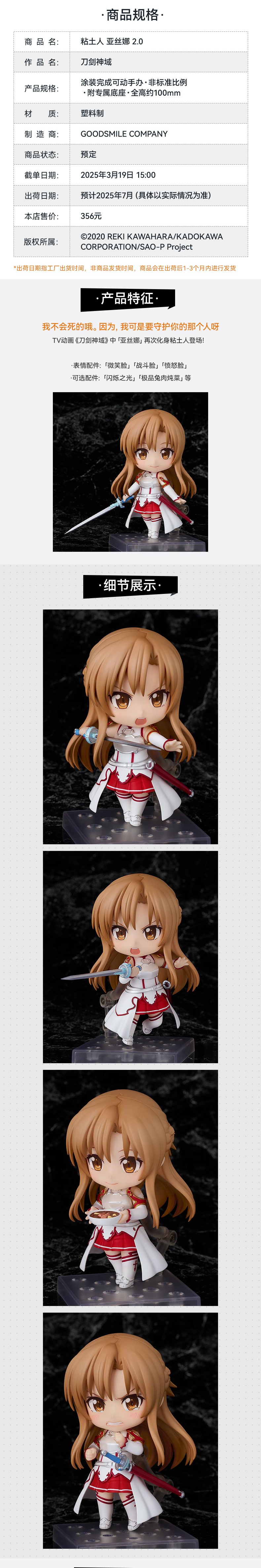 【GSC现货】粘土人 亚丝娜 2.0 刀剑神域