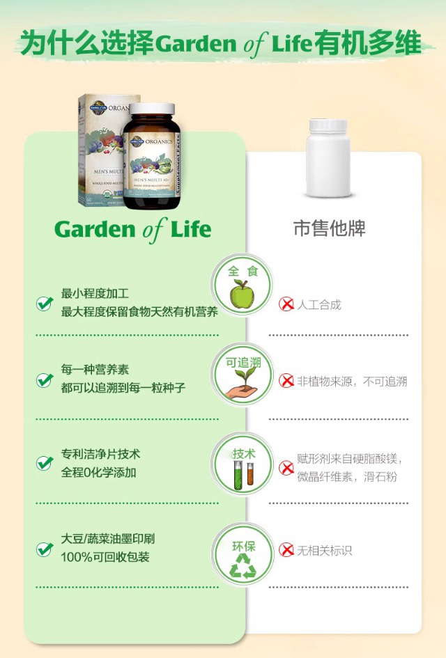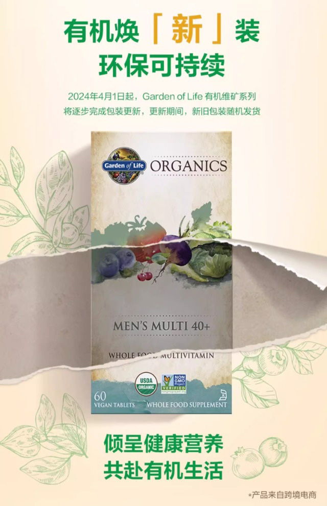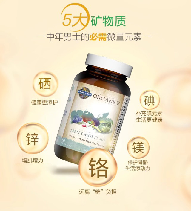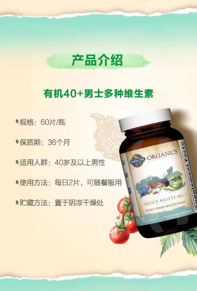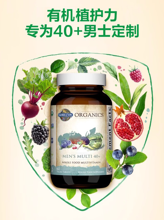 Garden of Life生命花园 40+男士天然有机多种维生素 60粒/瓶
