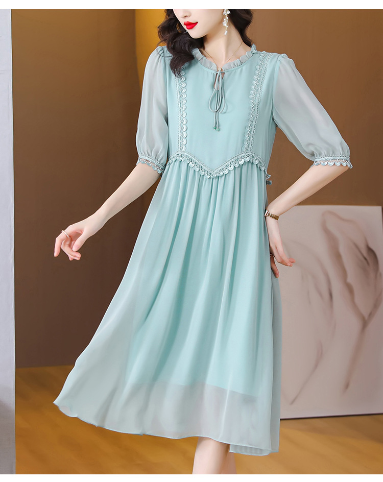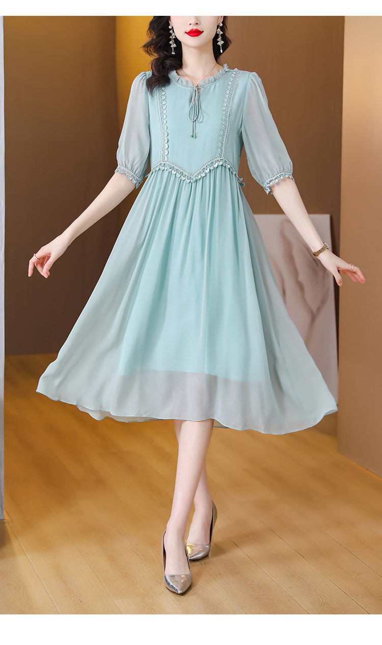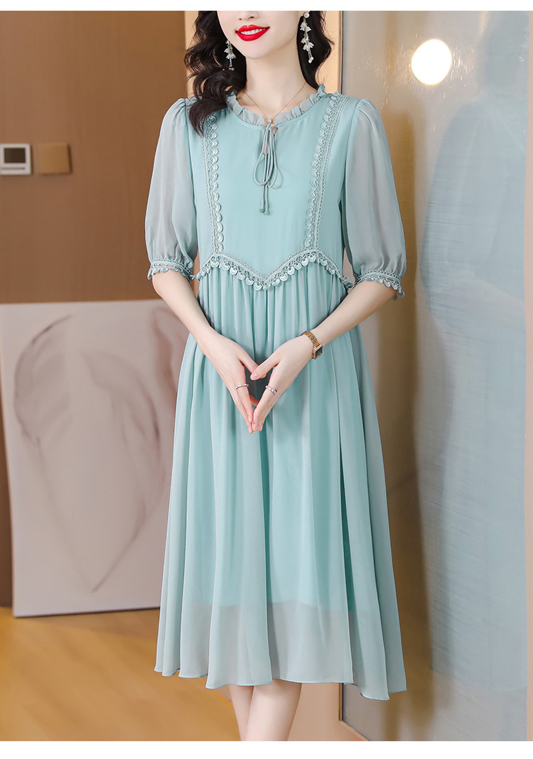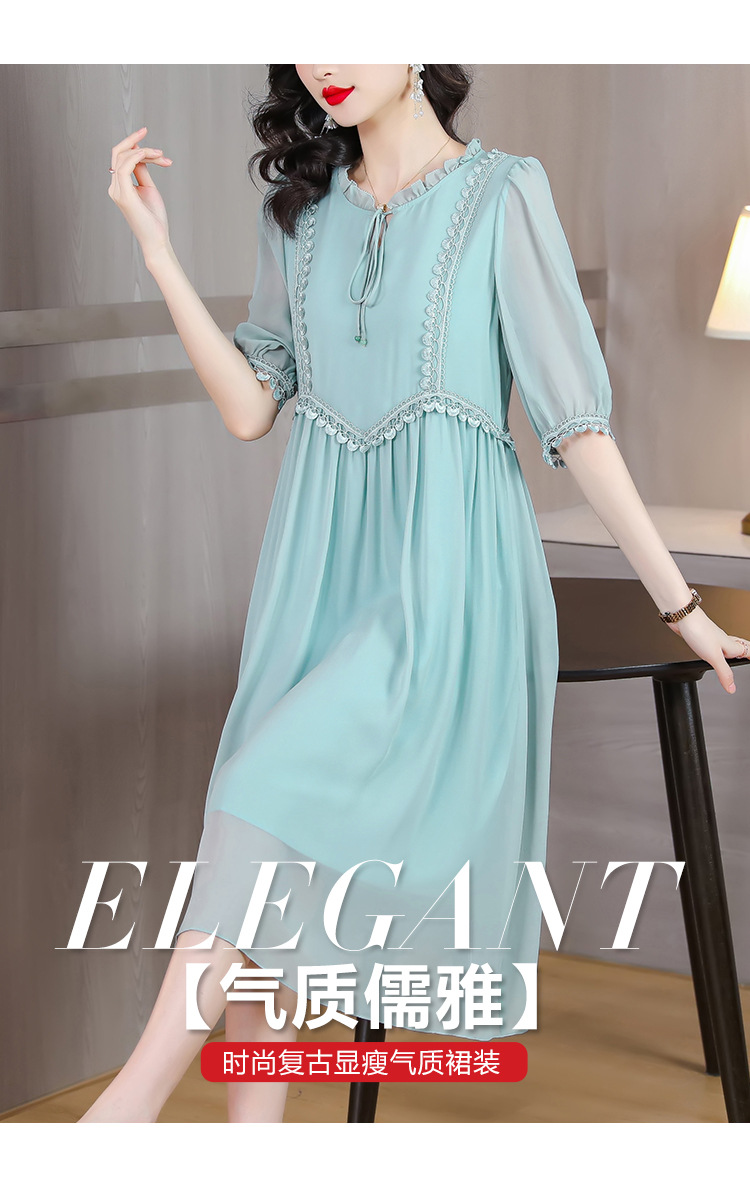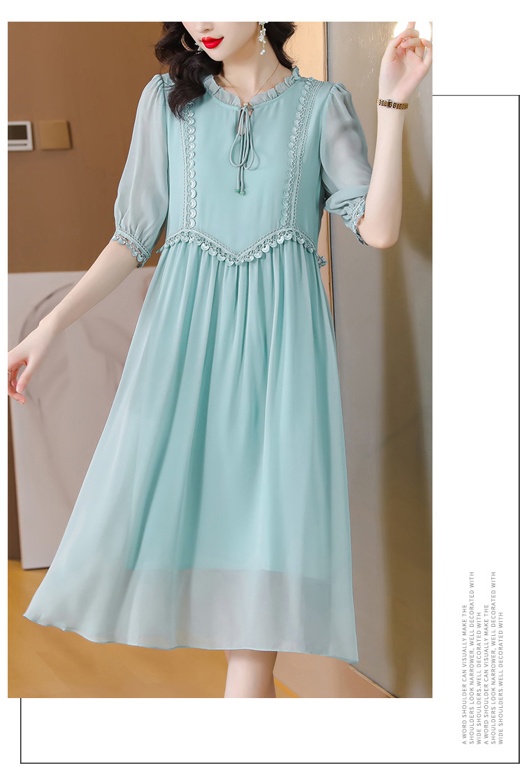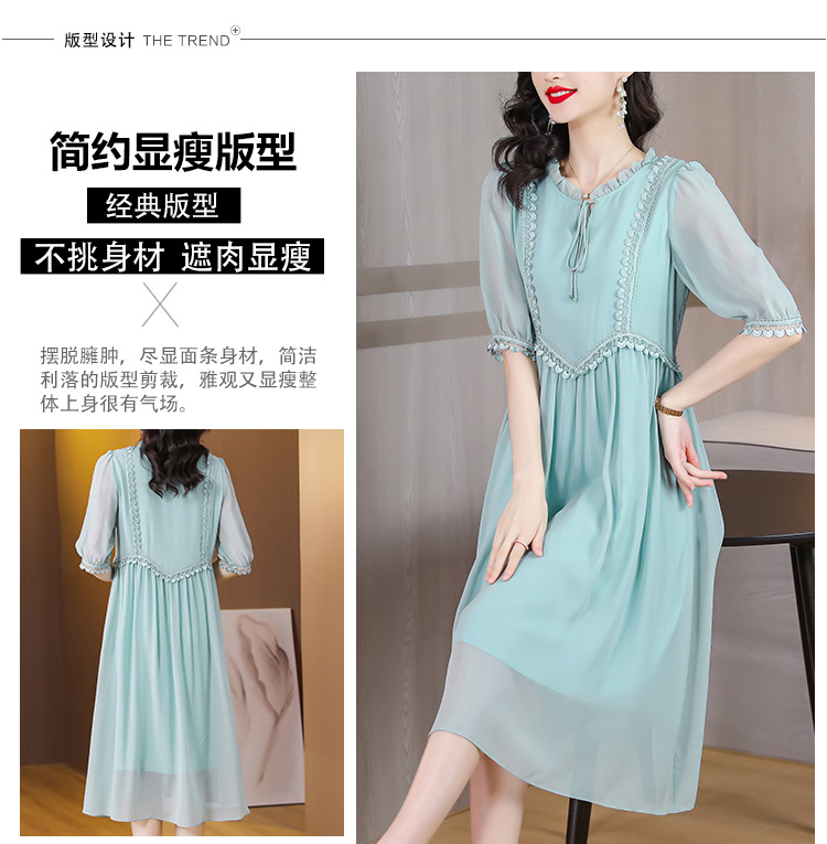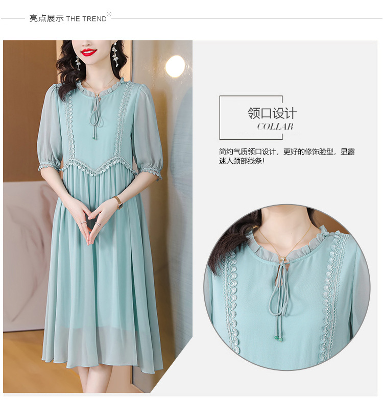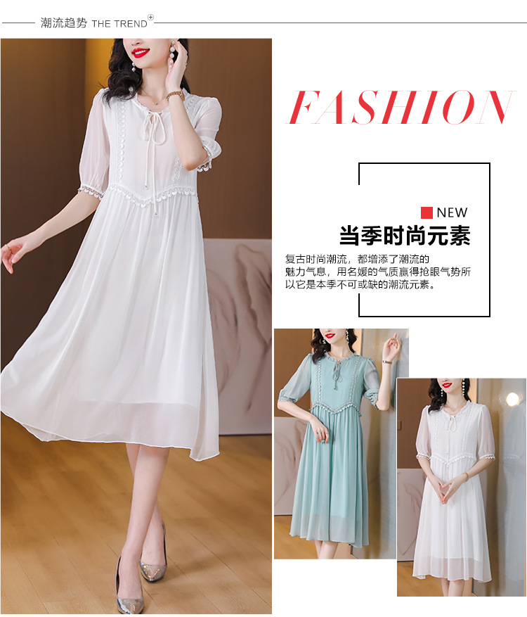 夏季新款,妈妈装时尚气质简约百搭纯色A字裙连衣裙AHM-ss3038