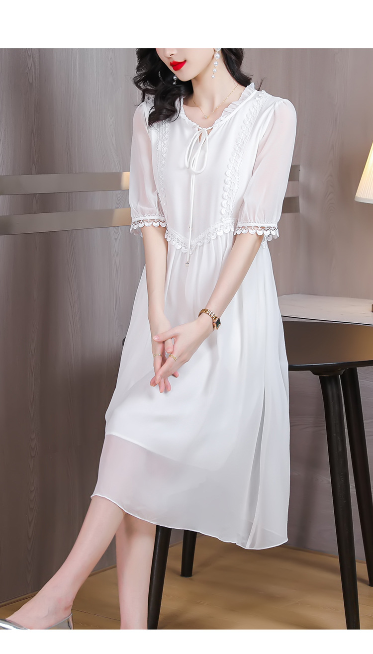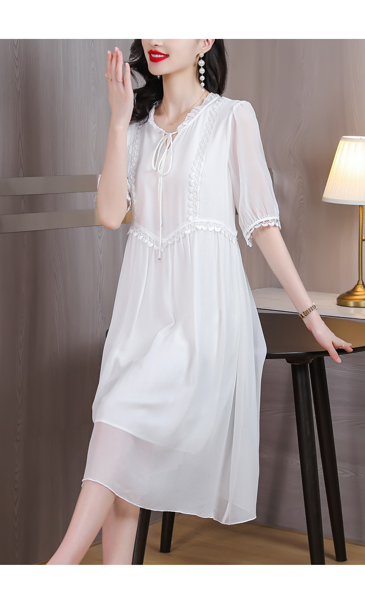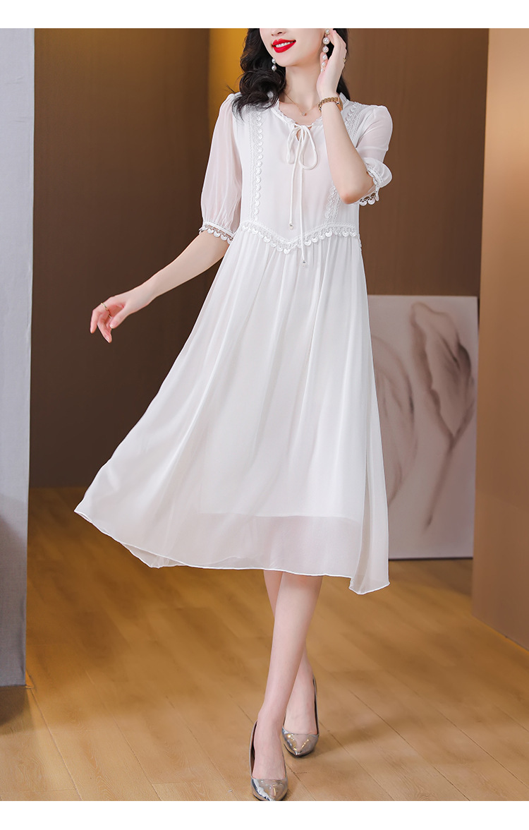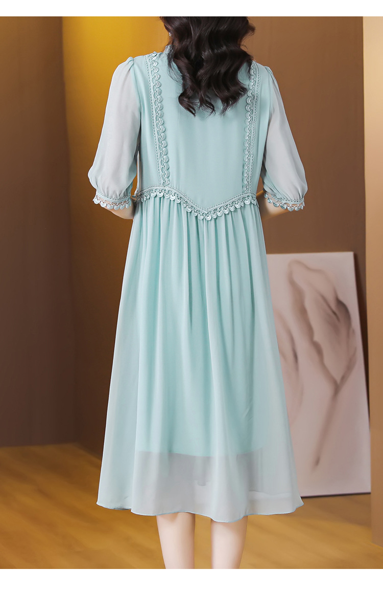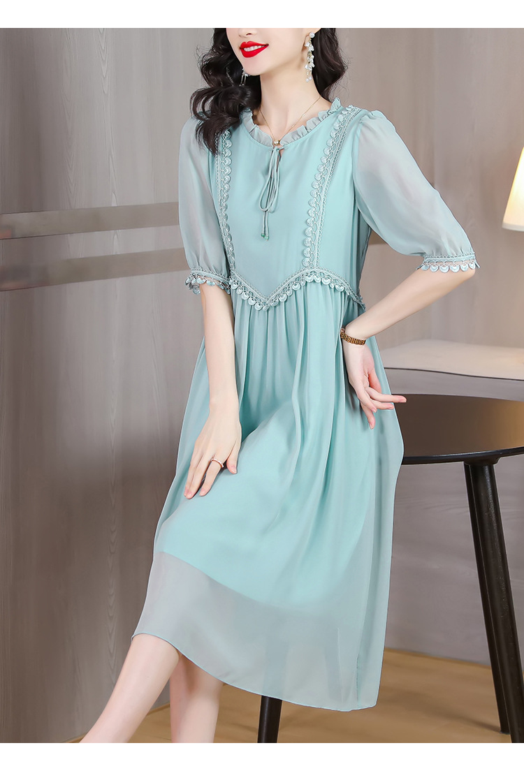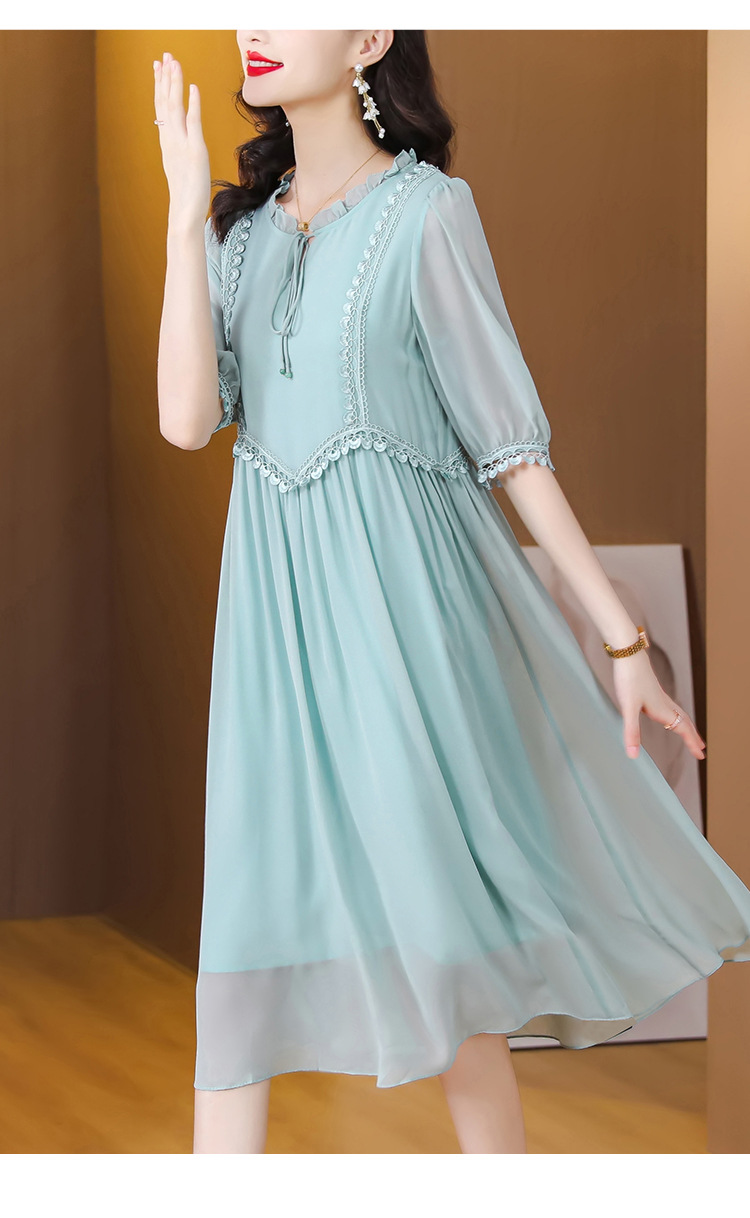 夏季新款,妈妈装时尚气质简约百搭纯色A字裙连衣裙AHM-ss3038