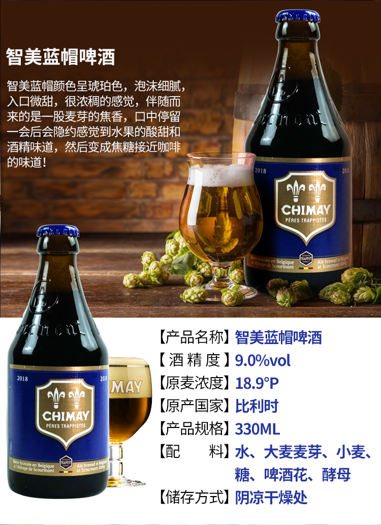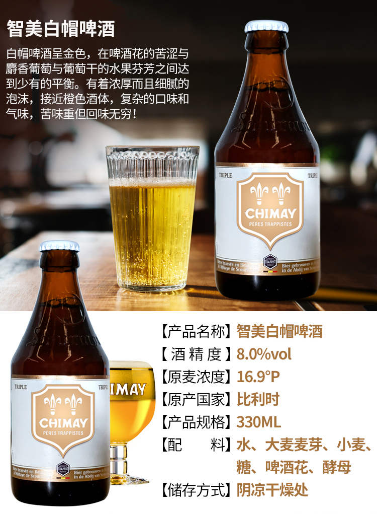 比利时智美系列啤酒蓝帽/红帽/白帽330ml 口感顺滑历史悠久 011268/011269/010002-4