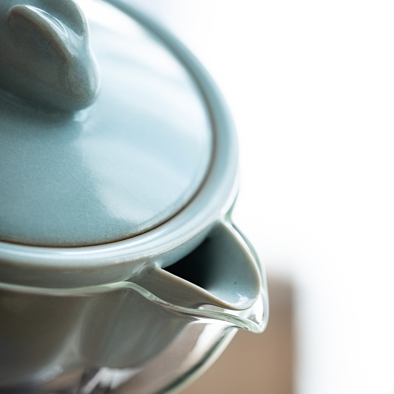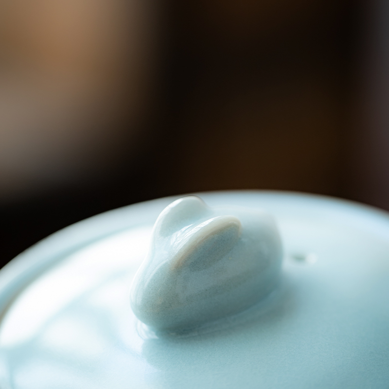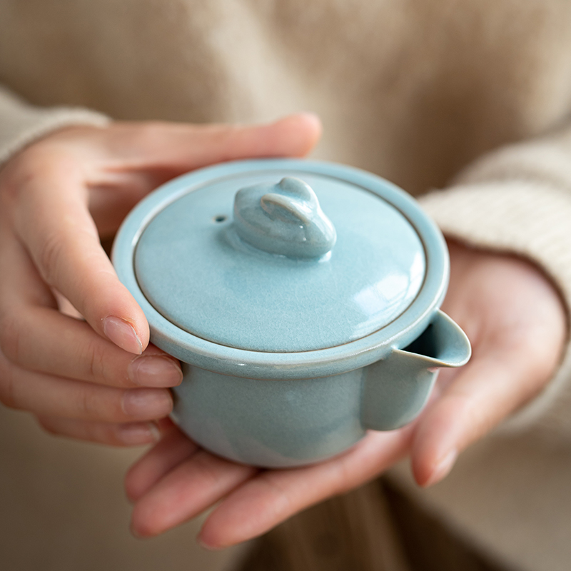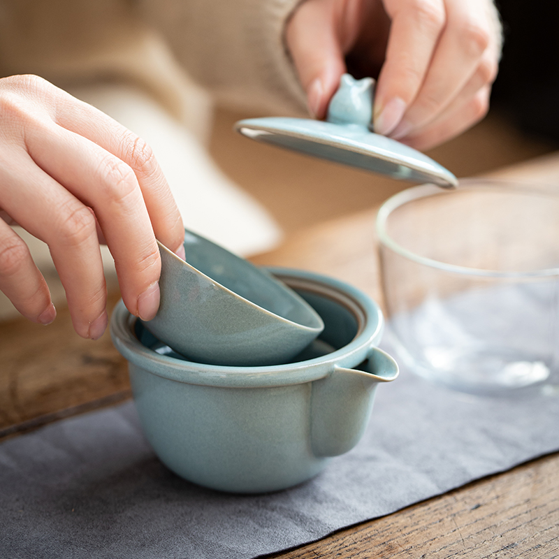 汝山明汝意兔-天青釉(便携)(pu便携包 壶:高6cm 宽10.6cm 容量160ml 公杯:高5.5cm 宽9cm 杯:高3cm 宽7cm)