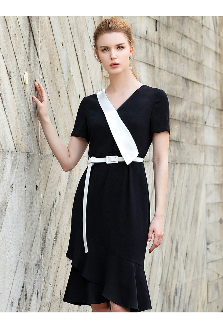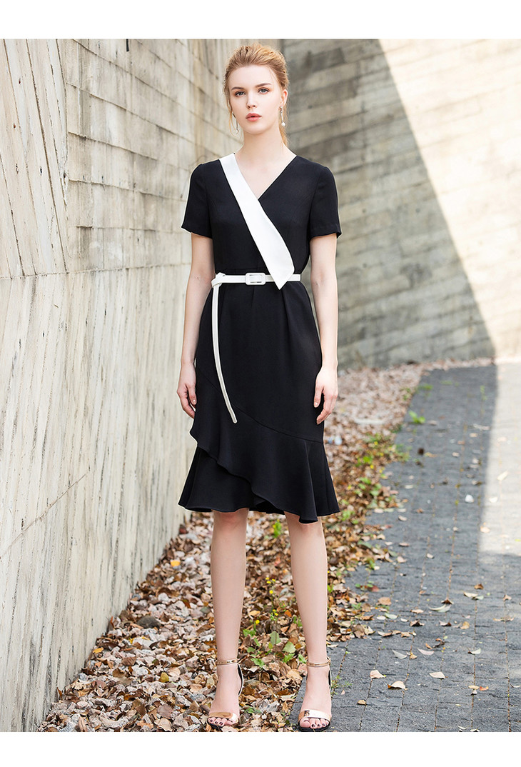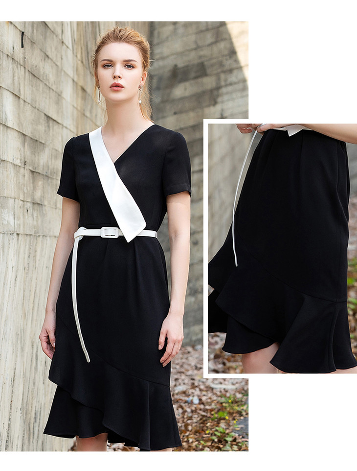 IWY/灰色人字纹喇叭裤羊毛套装黑灰拼接领女套装秋冬套装C12405+P32306