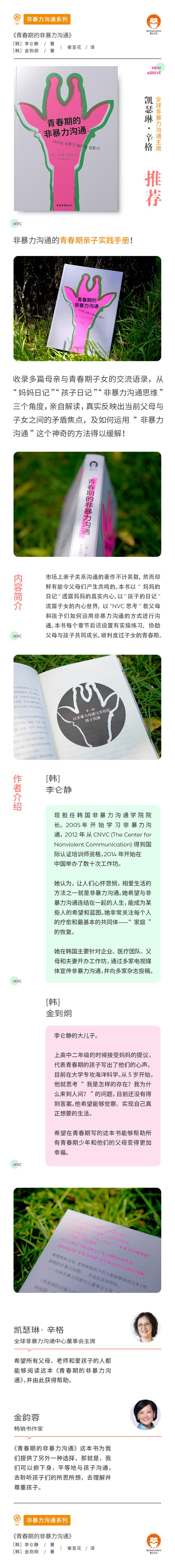 "全球非暴力沟通主席凯瑟琳·辛格推荐,非暴力沟通的青春期亲子实践手册! 收录多篇母亲与青春期子女的交流语录,从“妈妈日记”“孩子日记”“非暴力沟通思维”三个角度,亲自解读, 真实反映出当前父母与子女之间的矛盾焦点,及如何运用“非暴力沟通”这个神奇的方法得以缓解!"