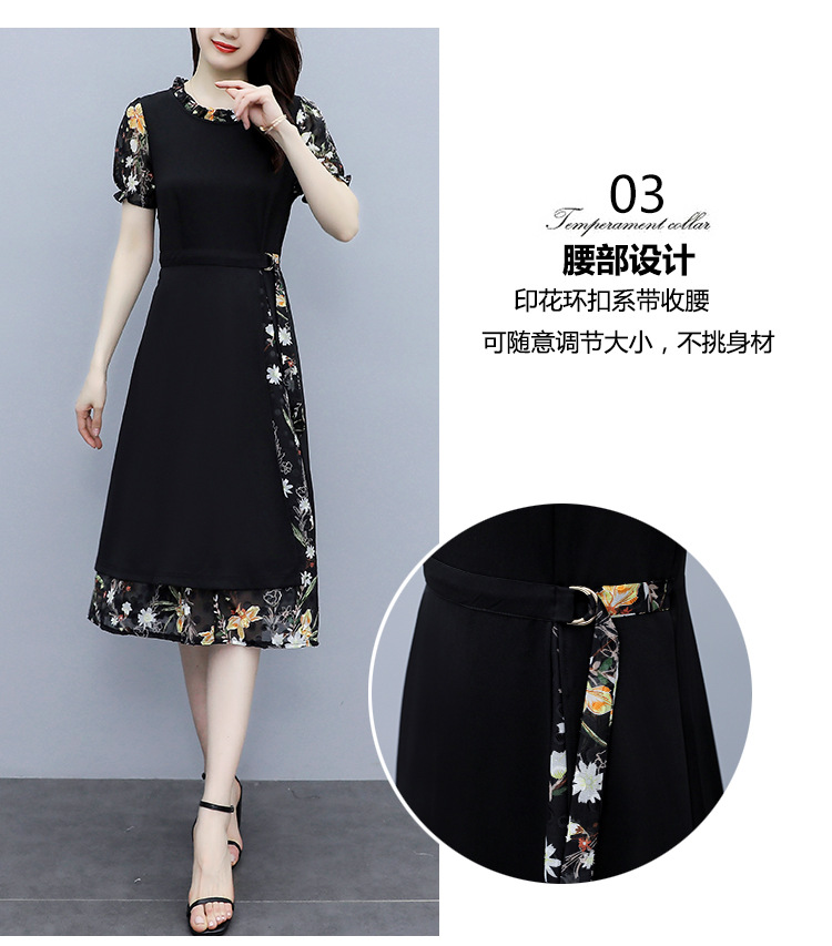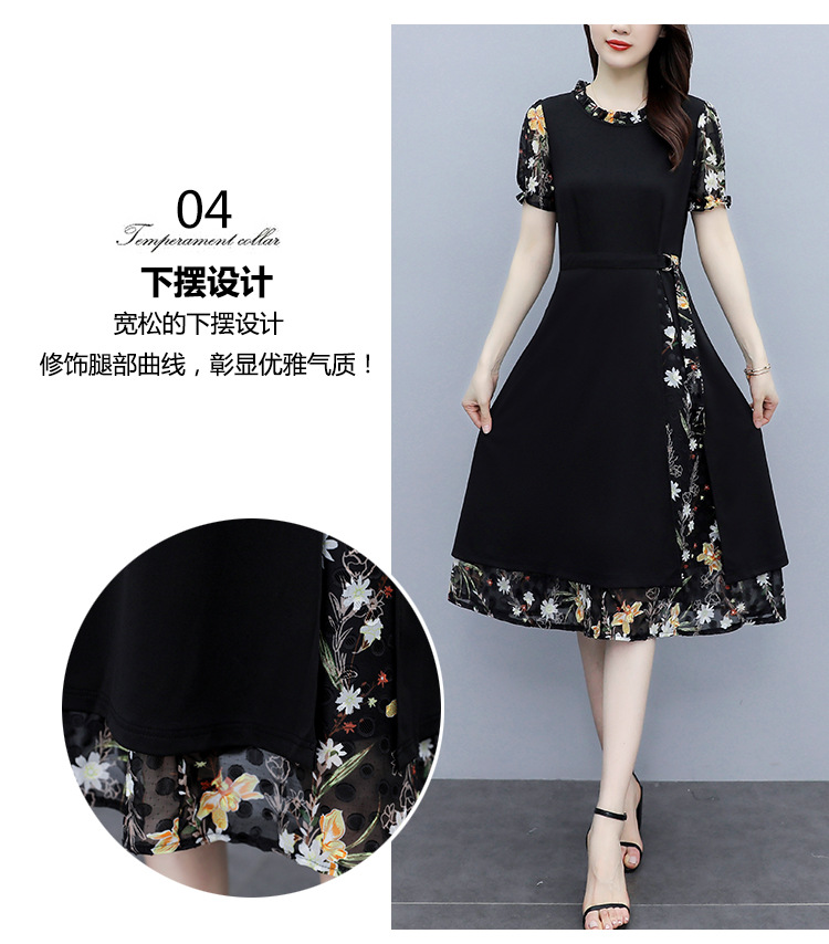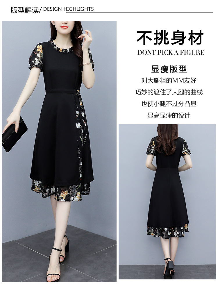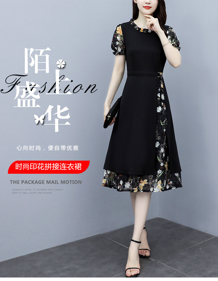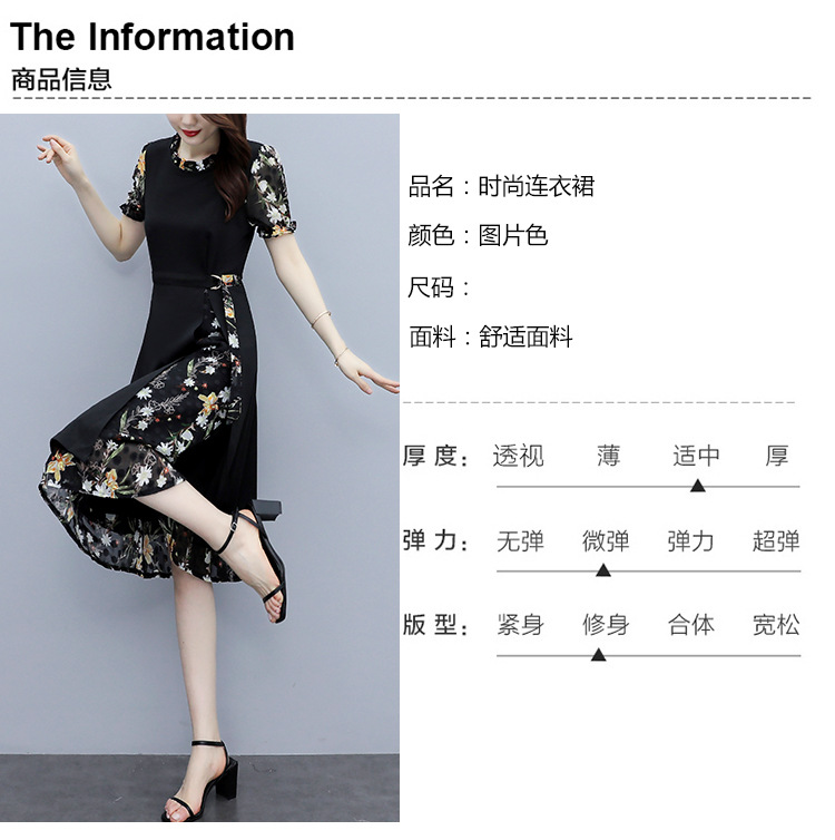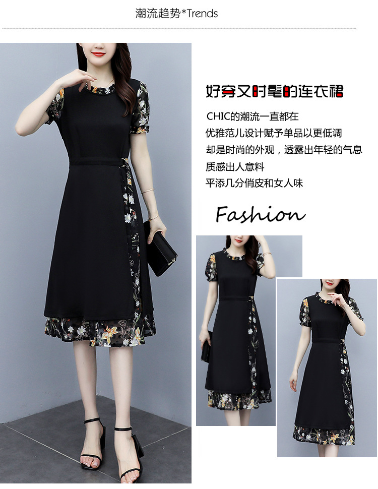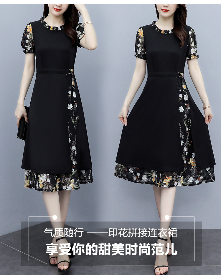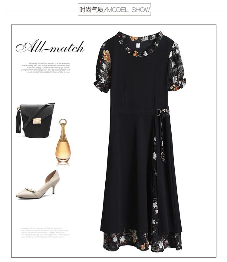 时尚拼接碎花连衣裙大码遮肚显瘦打底裙TYL06618