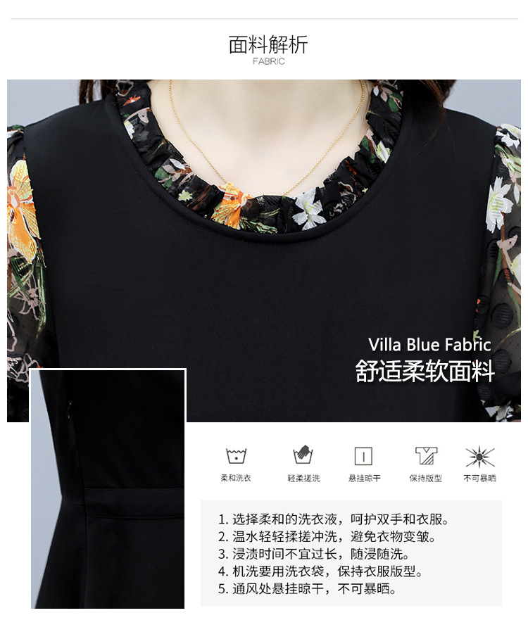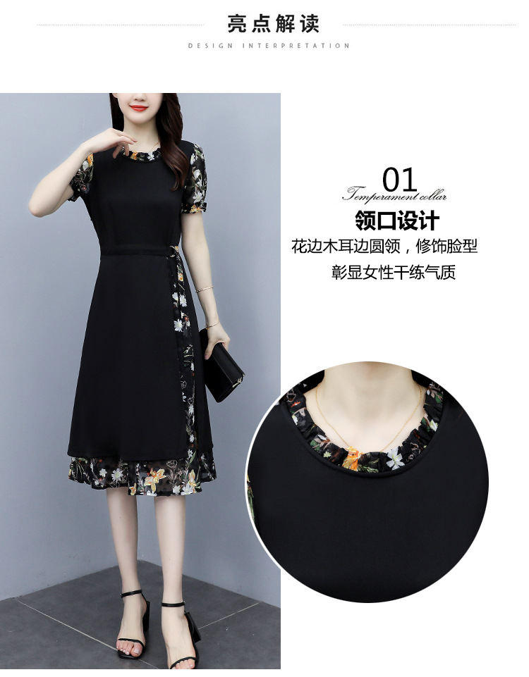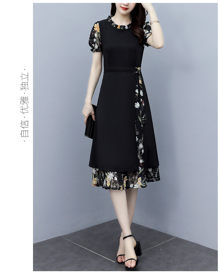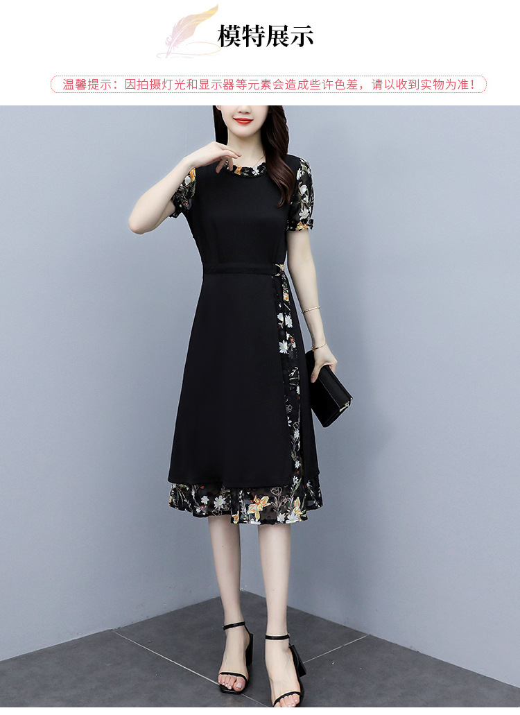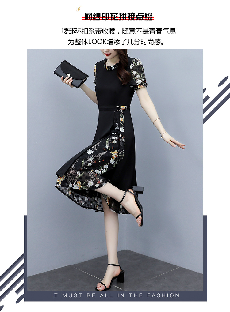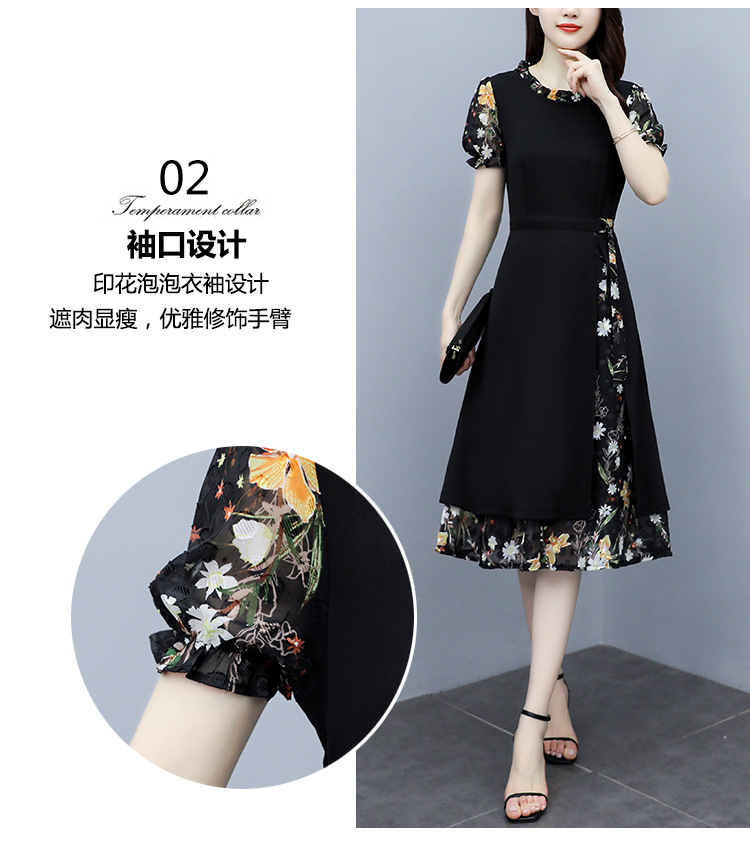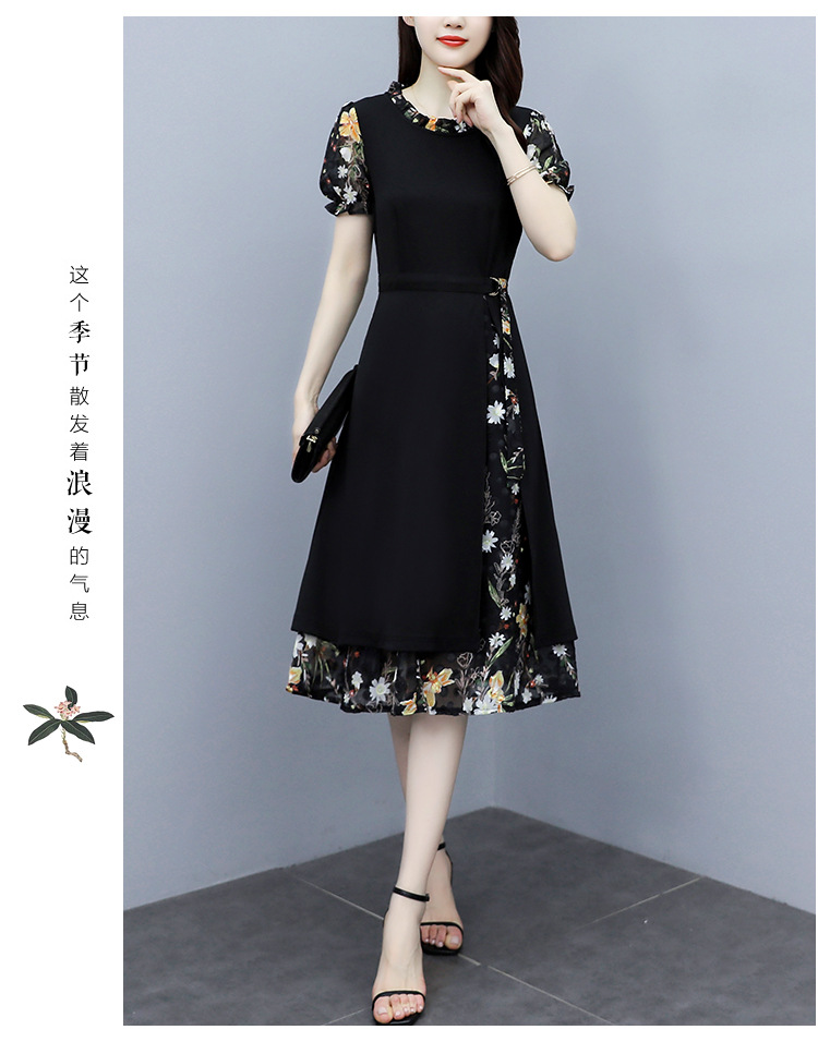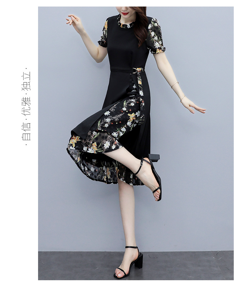 时尚拼接碎花连衣裙大码遮肚显瘦打底裙TYL06618