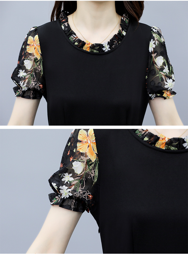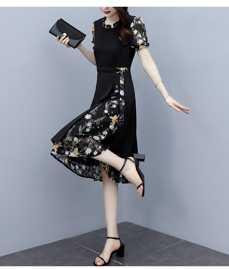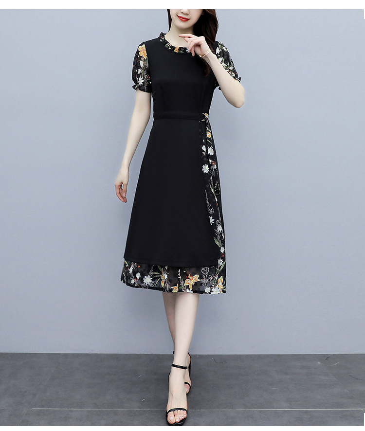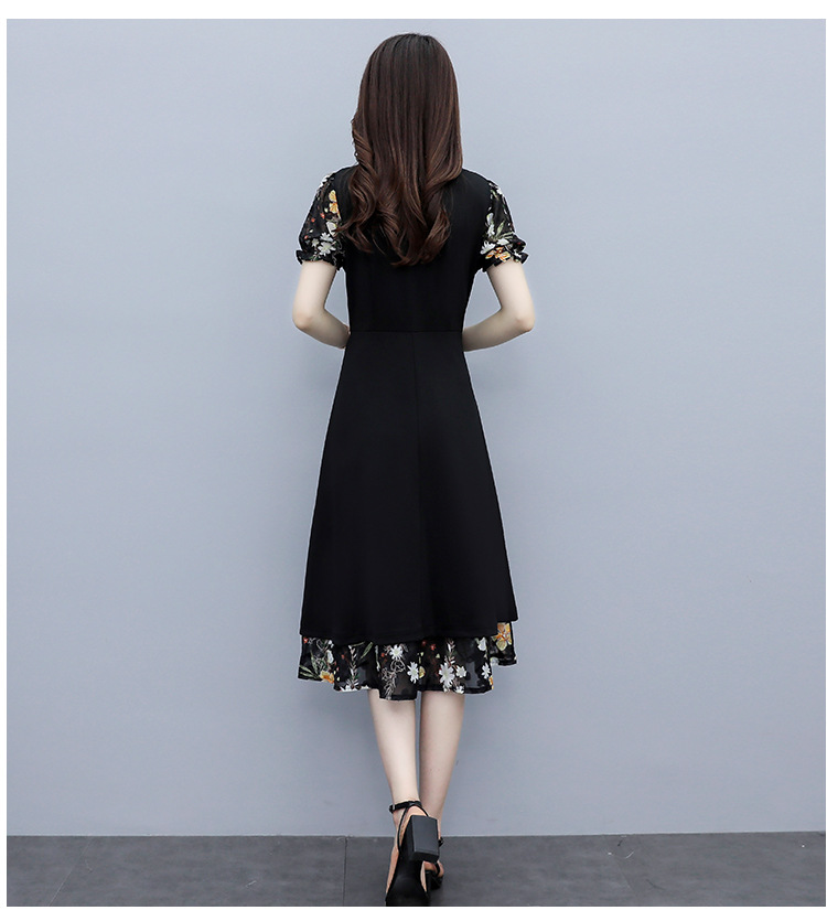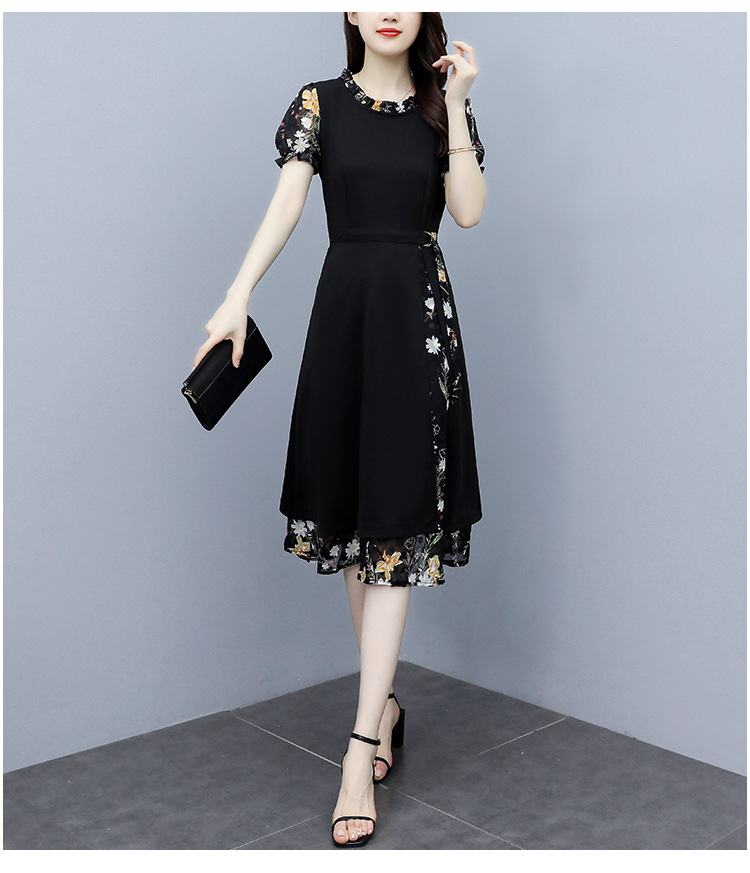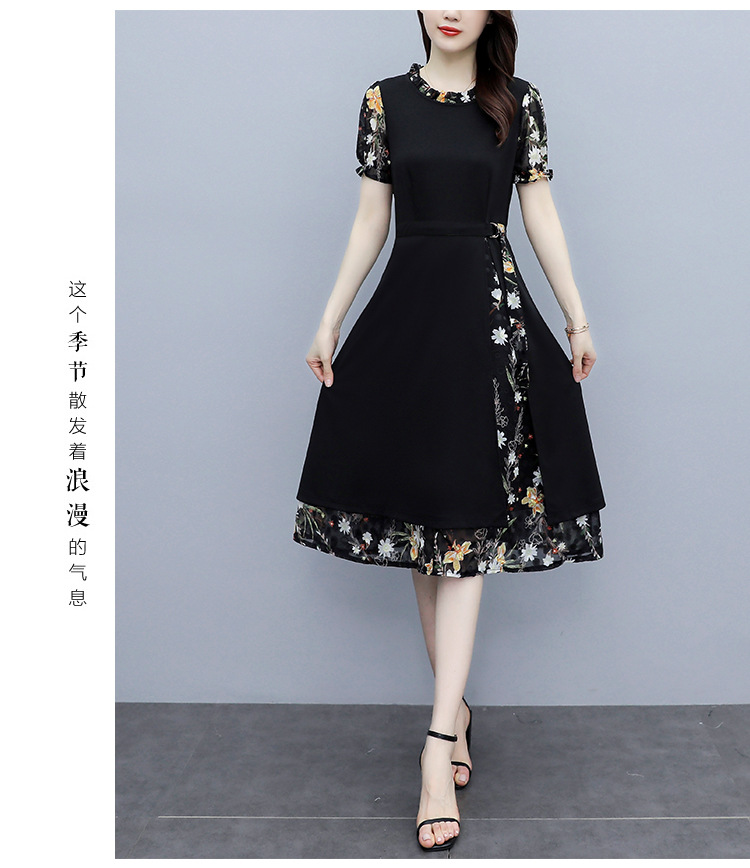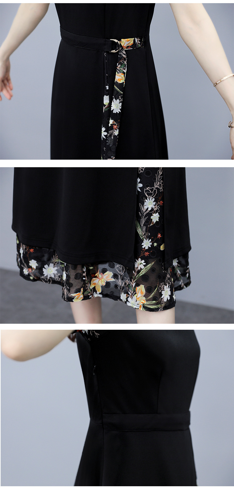 时尚拼接碎花连衣裙大码遮肚显瘦打底裙TYL06618