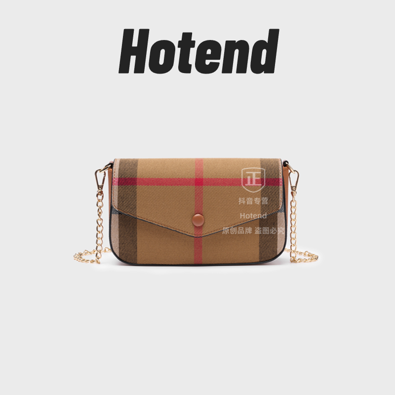 【国内普通仓】Hotend条纹斜挎信封包棕拼焦糖色约21*5*12cm