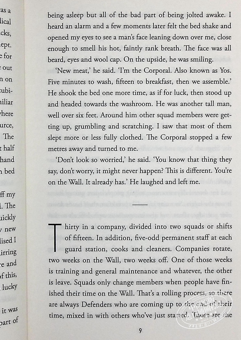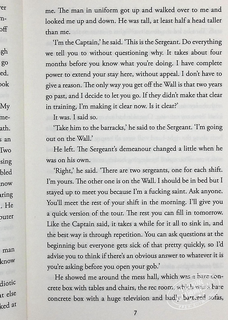 Kavanagh begins his life patrolling the Wall. If he’s lucky, if nothing goes wrong, he only has two years of this, 729 more nights.