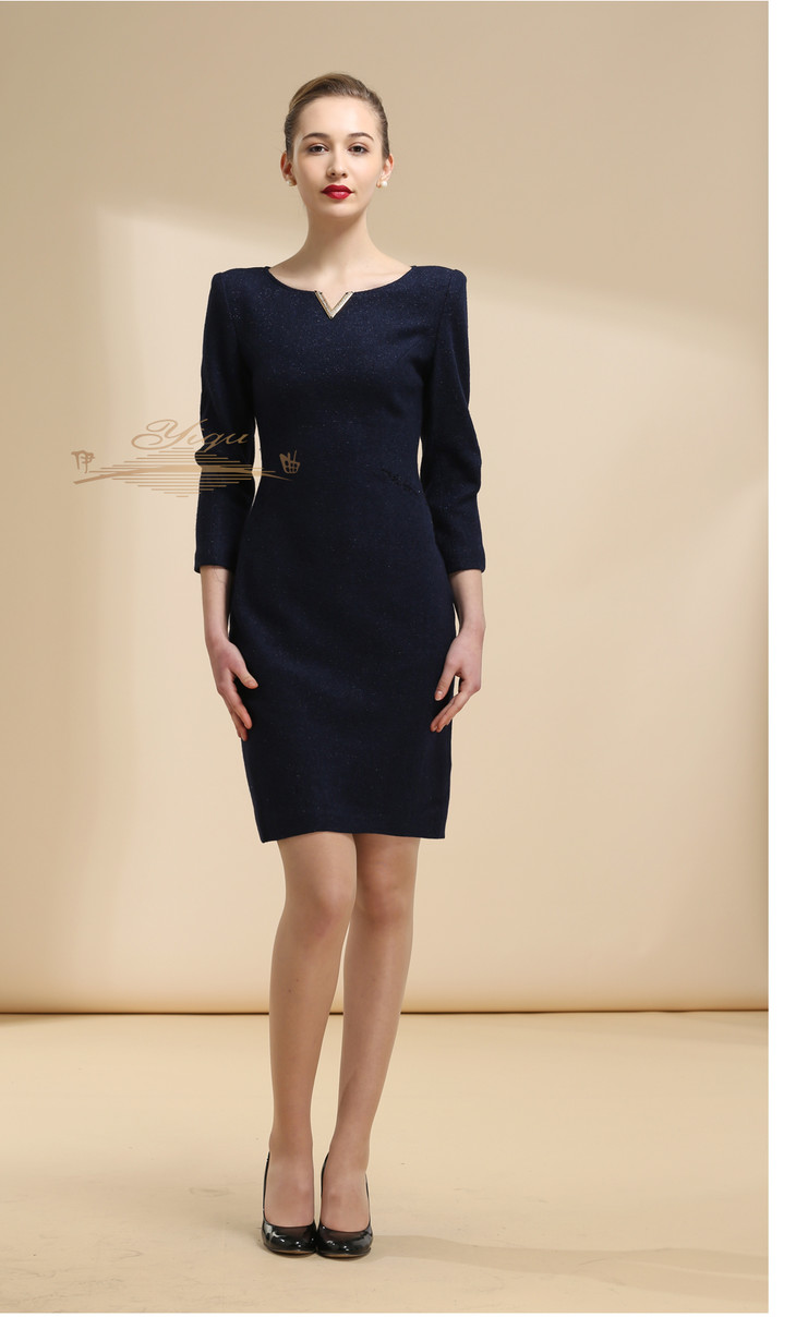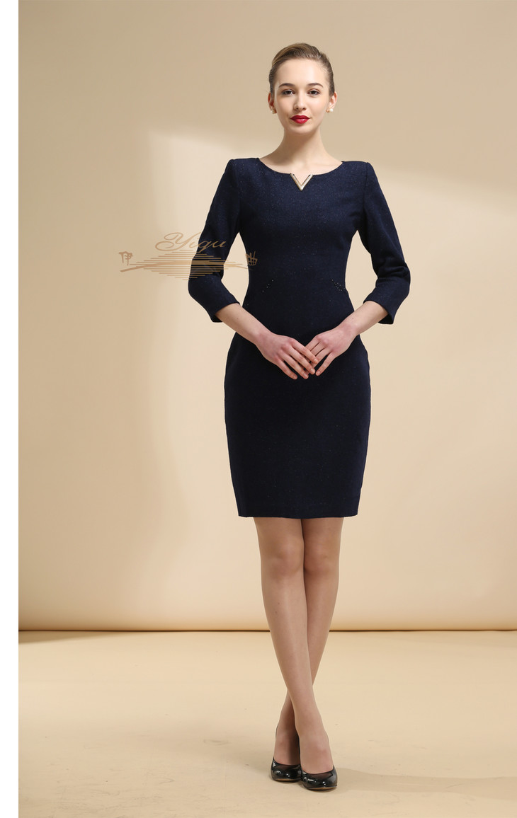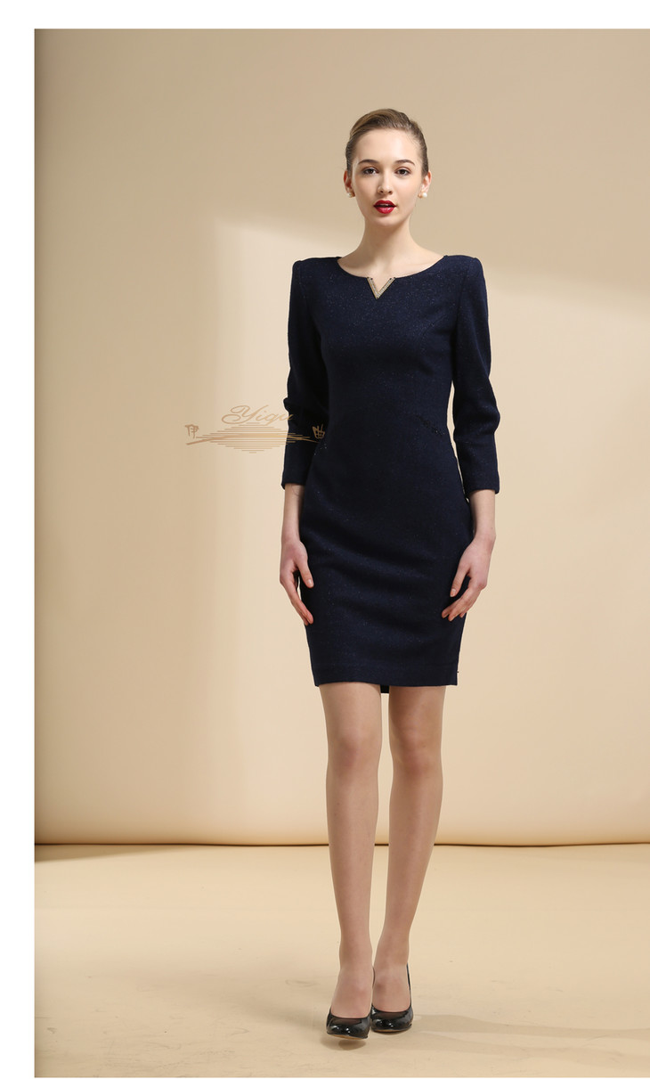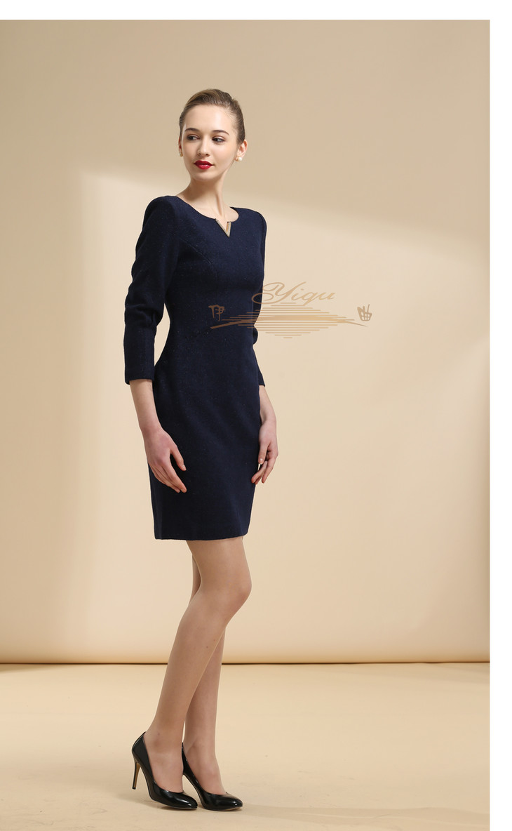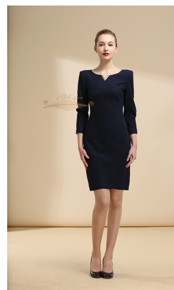 【特惠】YIQU |“V绽放”连身裙(深兰·含30%羊毛)PT