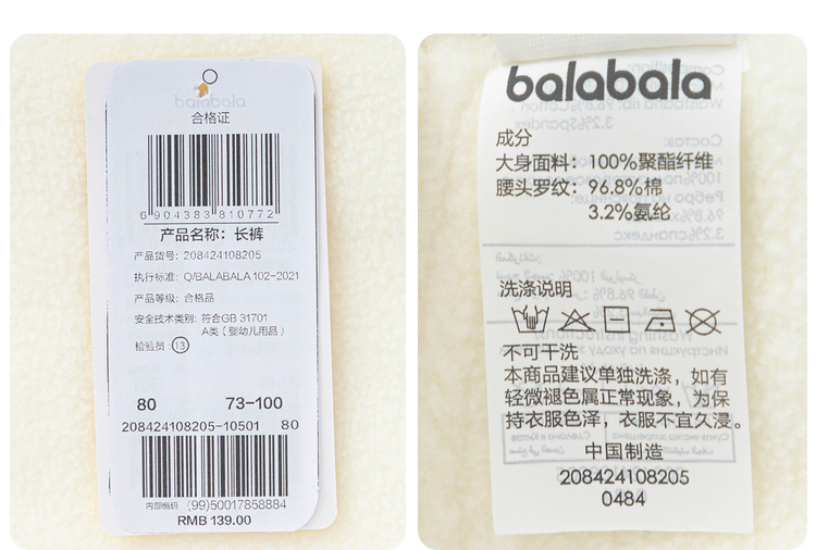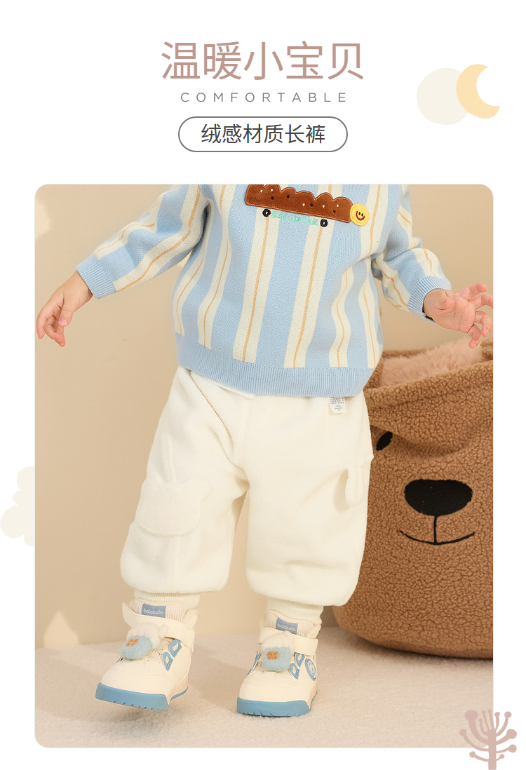 巴拉巴拉宝宝裤子男童长裤女童加绒裤新款冬装运动裤摇粒绒潮
