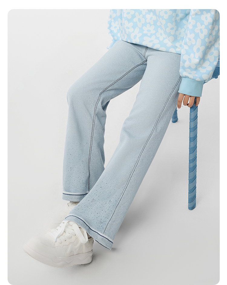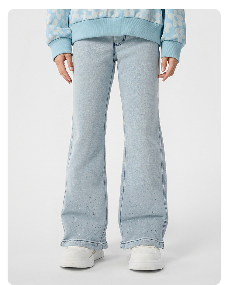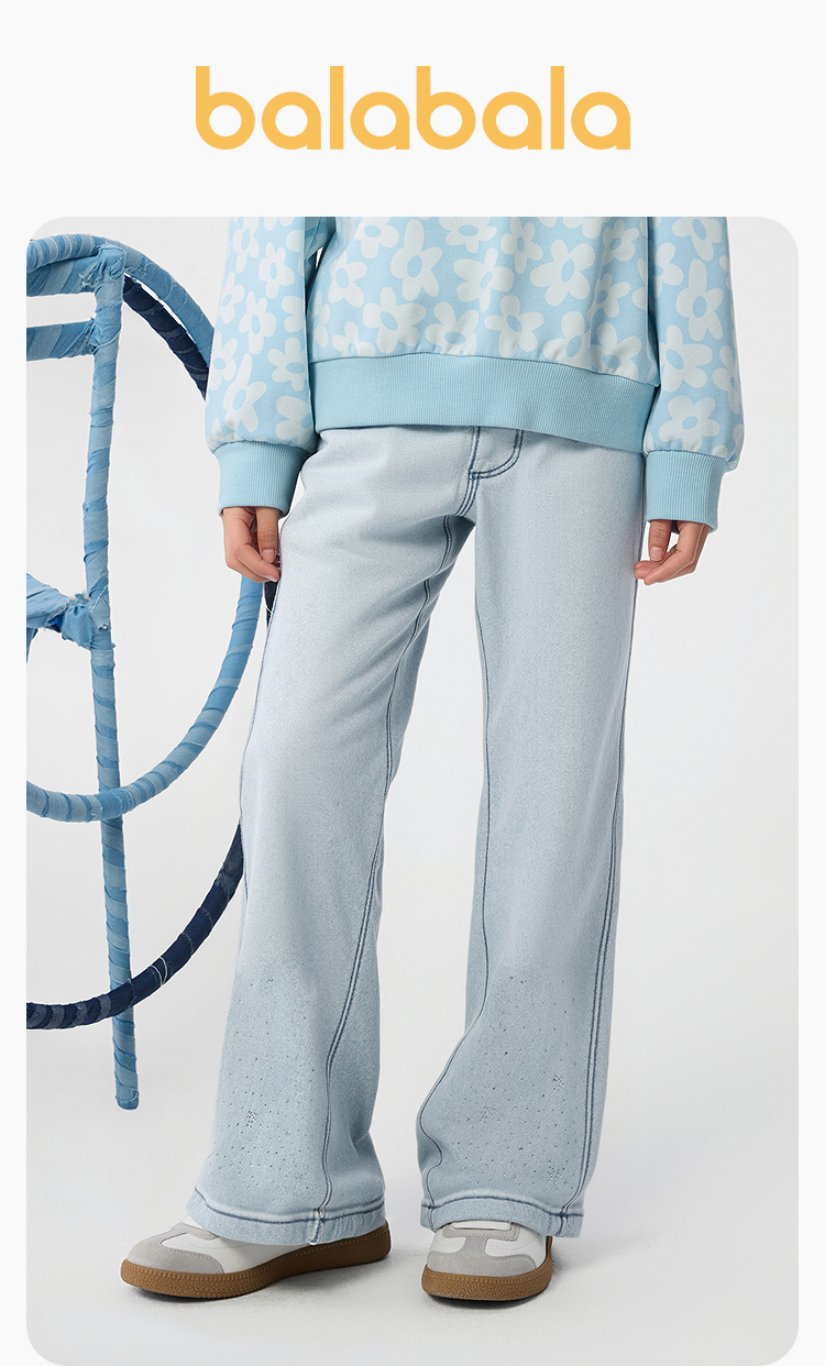 巴拉巴拉童装女童裤子儿童牛仔裤2025冬新加绒喇叭裤