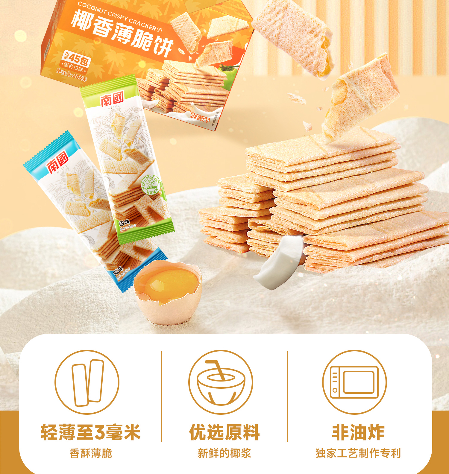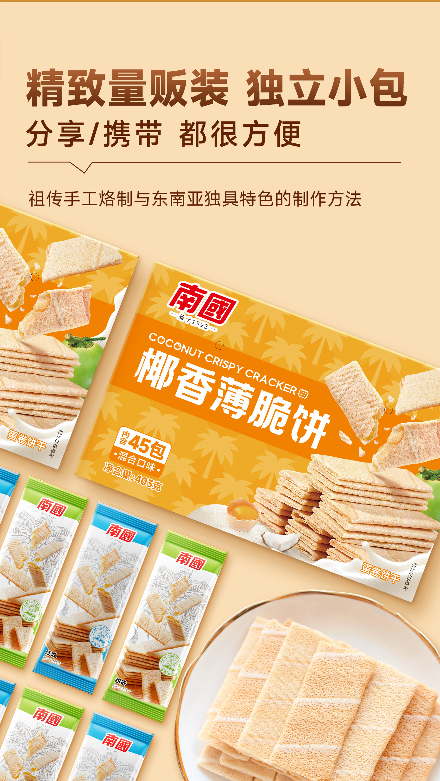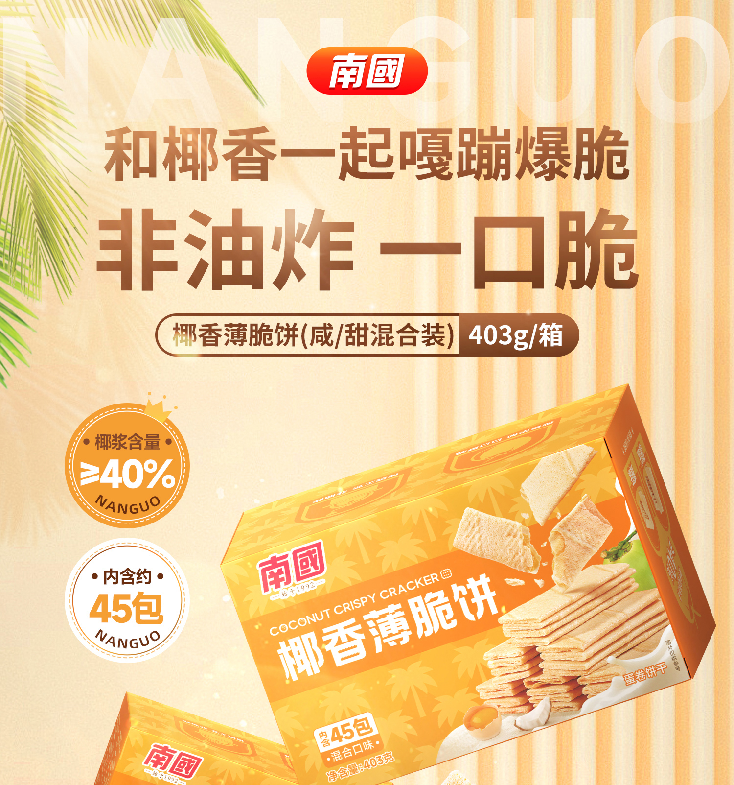 南国食品椰香薄饼403g/盒 海南特产 饼干零食小吃早餐休闲薄脆代餐