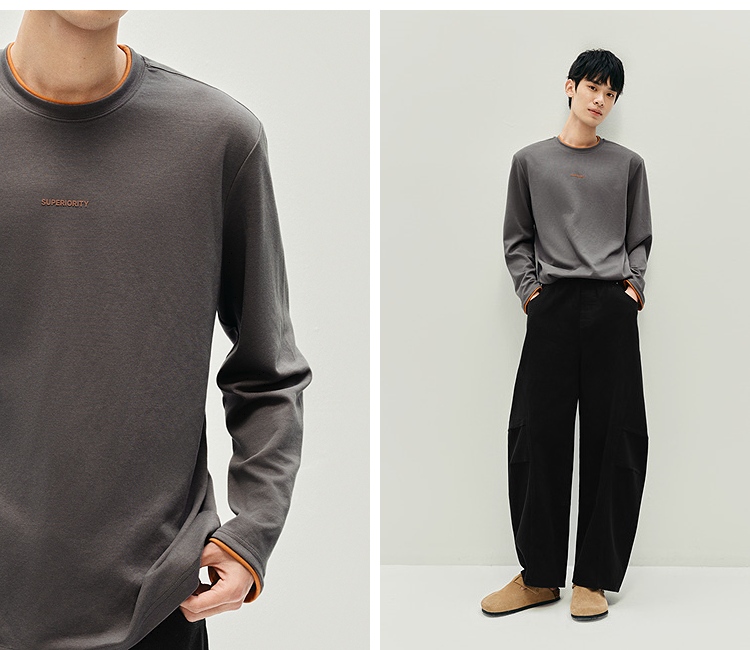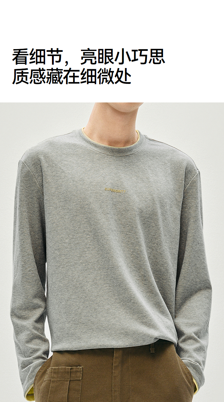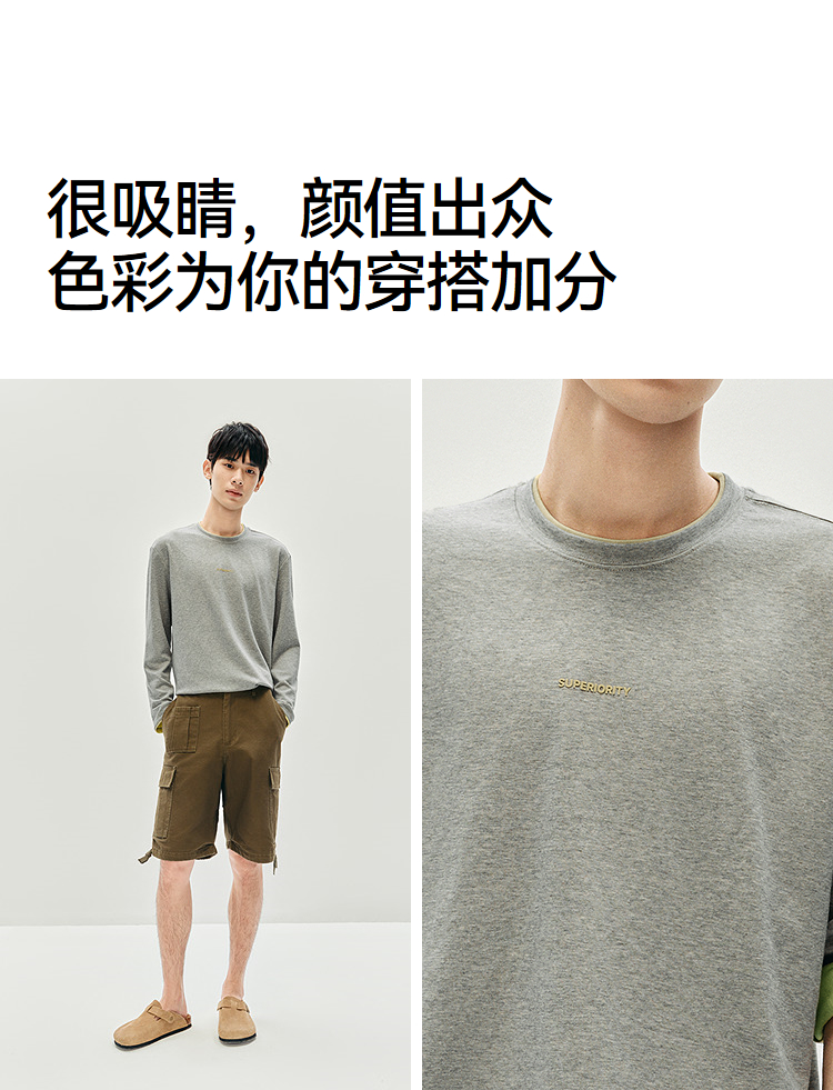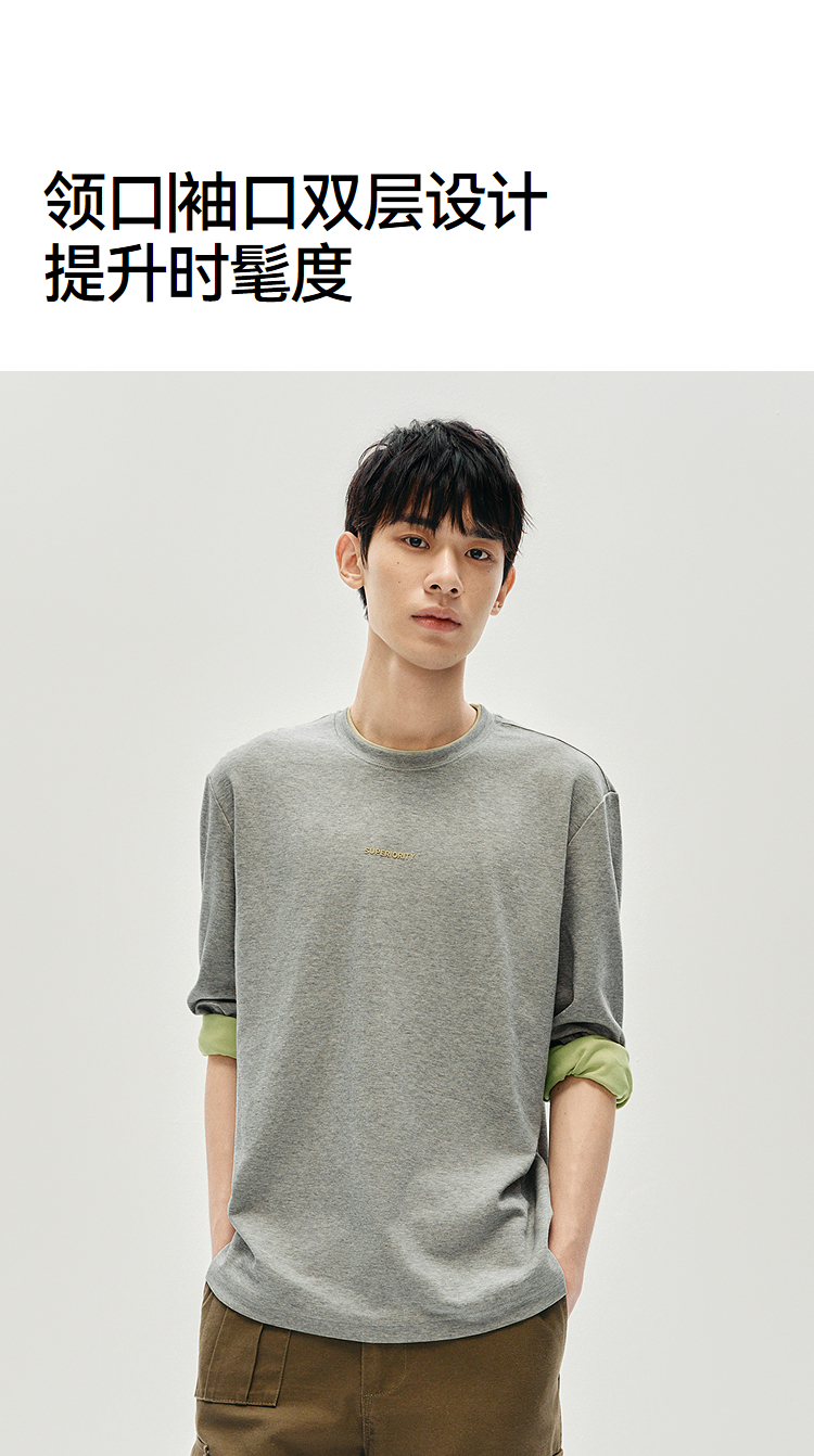 森马长袖T恤男秋季撞色印花内搭宽松打底衫2025新款上衣圆领休闲