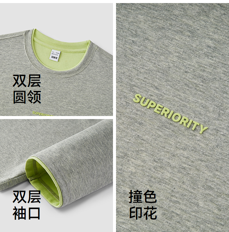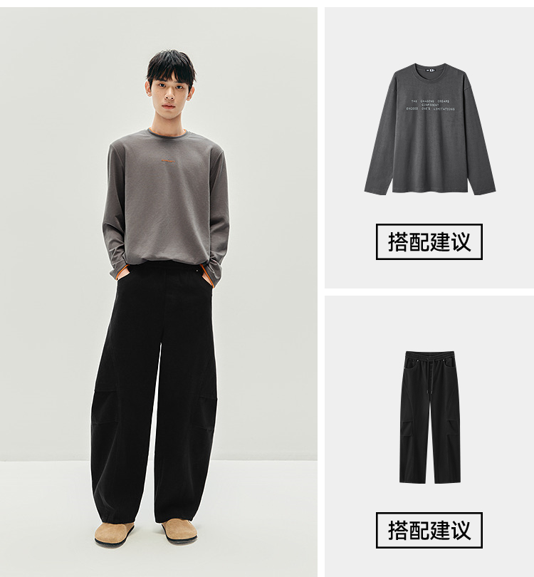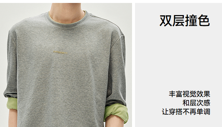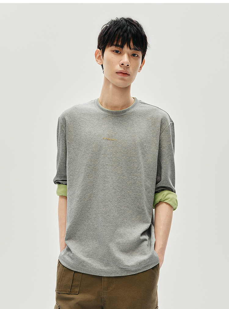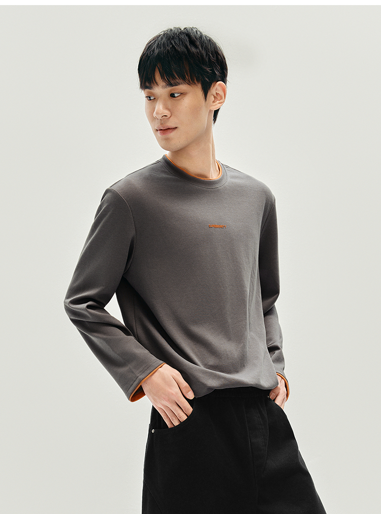 森马长袖T恤男秋季撞色印花内搭宽松打底衫2025新款上衣圆领休闲