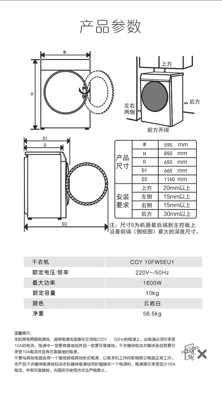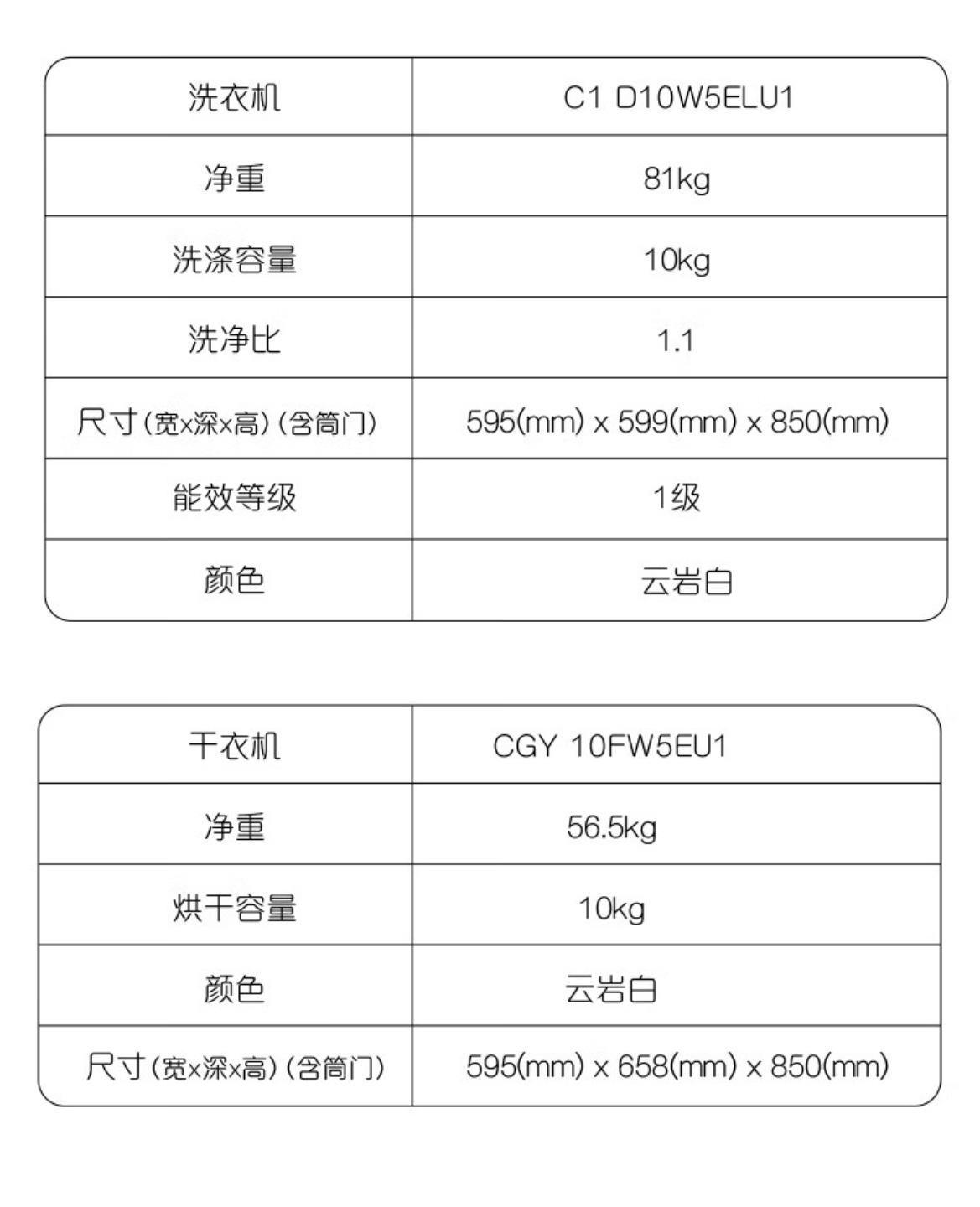 卡萨帝(Casarte)洗烘套装 C1 D10W5ELU1+CGY10FW5EU1