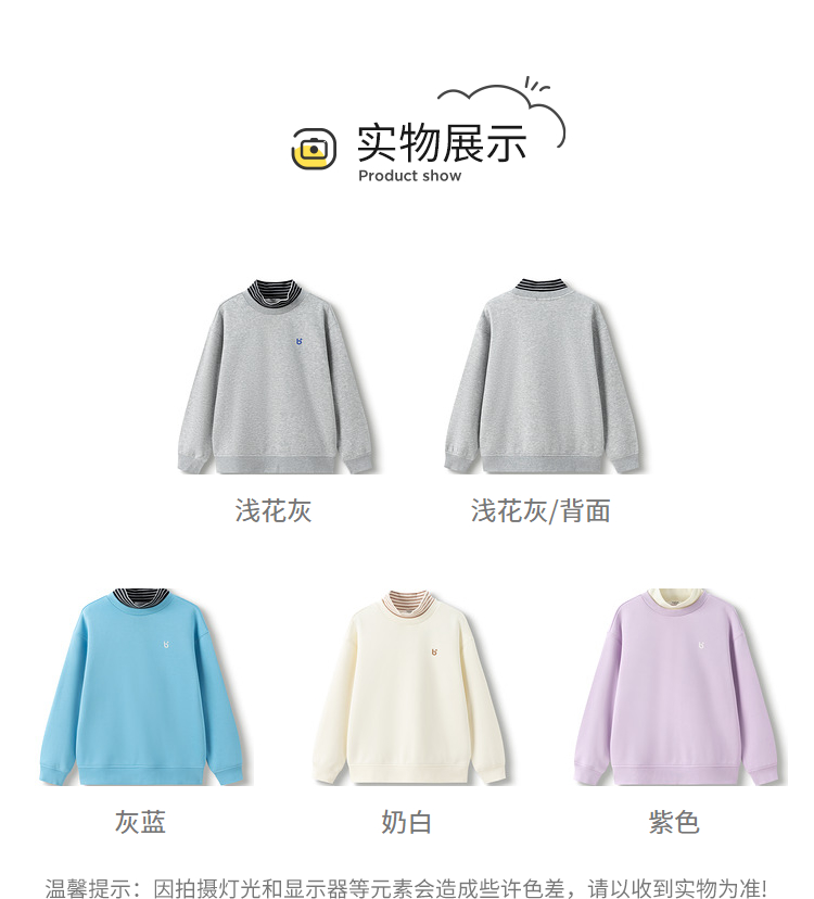 巴拉巴拉童装男童卫衣儿童秋冬上衣加绒女童高领保暖舒适百搭时尚