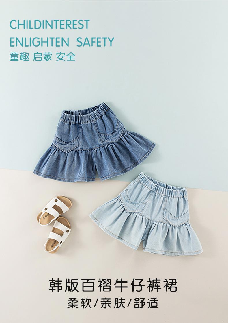 女童短裙夏季薄款宝宝软牛仔裤小童韩版百褶裙夏装裤裙儿童半身裙