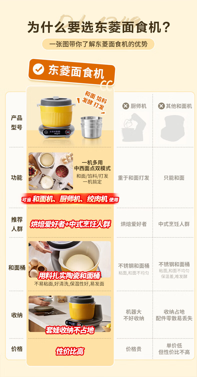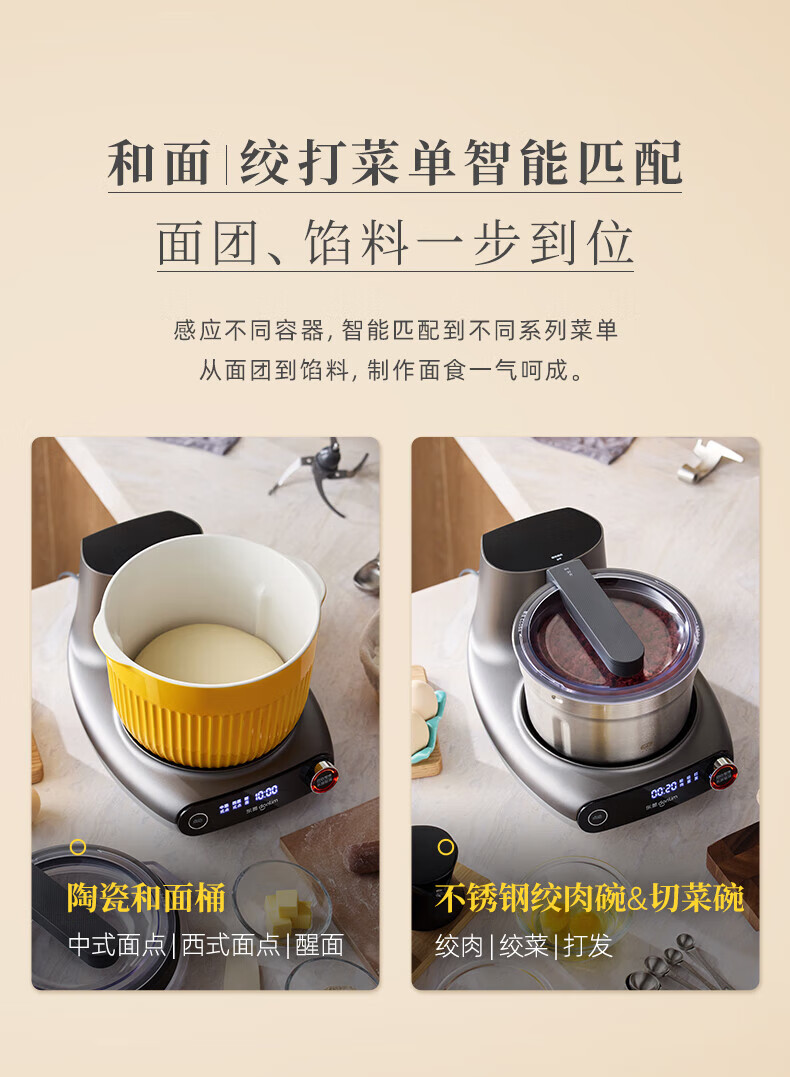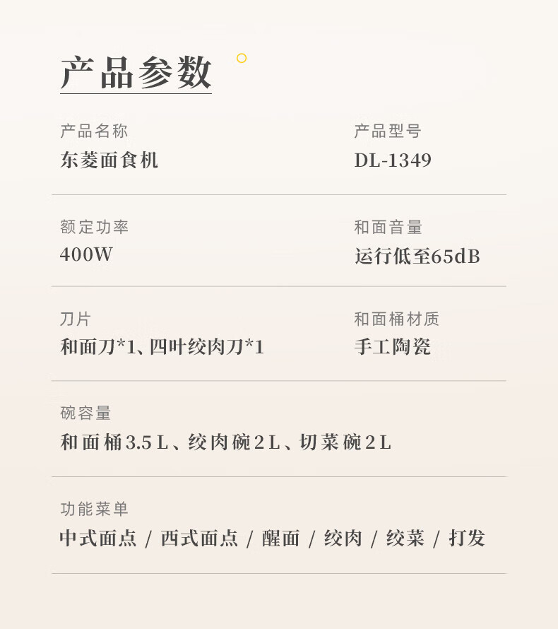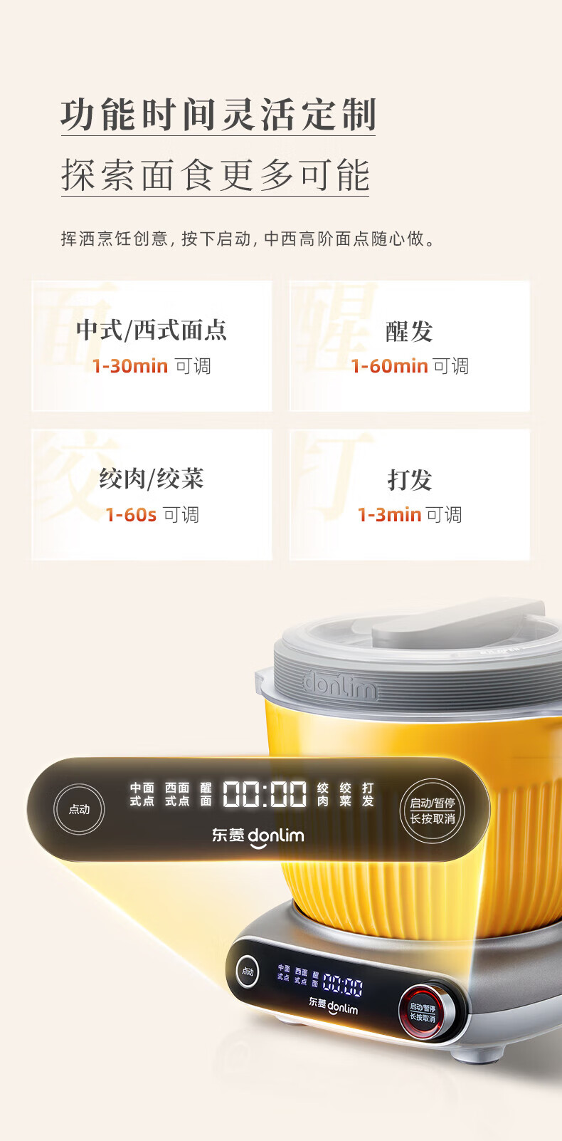 东菱(Donlim)和面机 家用揉面机发面机醒面 电动智能搅拌器 绞肉机 全自动厨师机 面条机 面食机 多功能面食机DL-1349【制馅和面】 3.5L