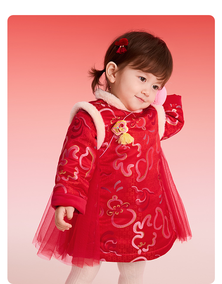 【balaOne】巴拉巴拉童装女童连衣裙新中式裙子缎面2025新款春装