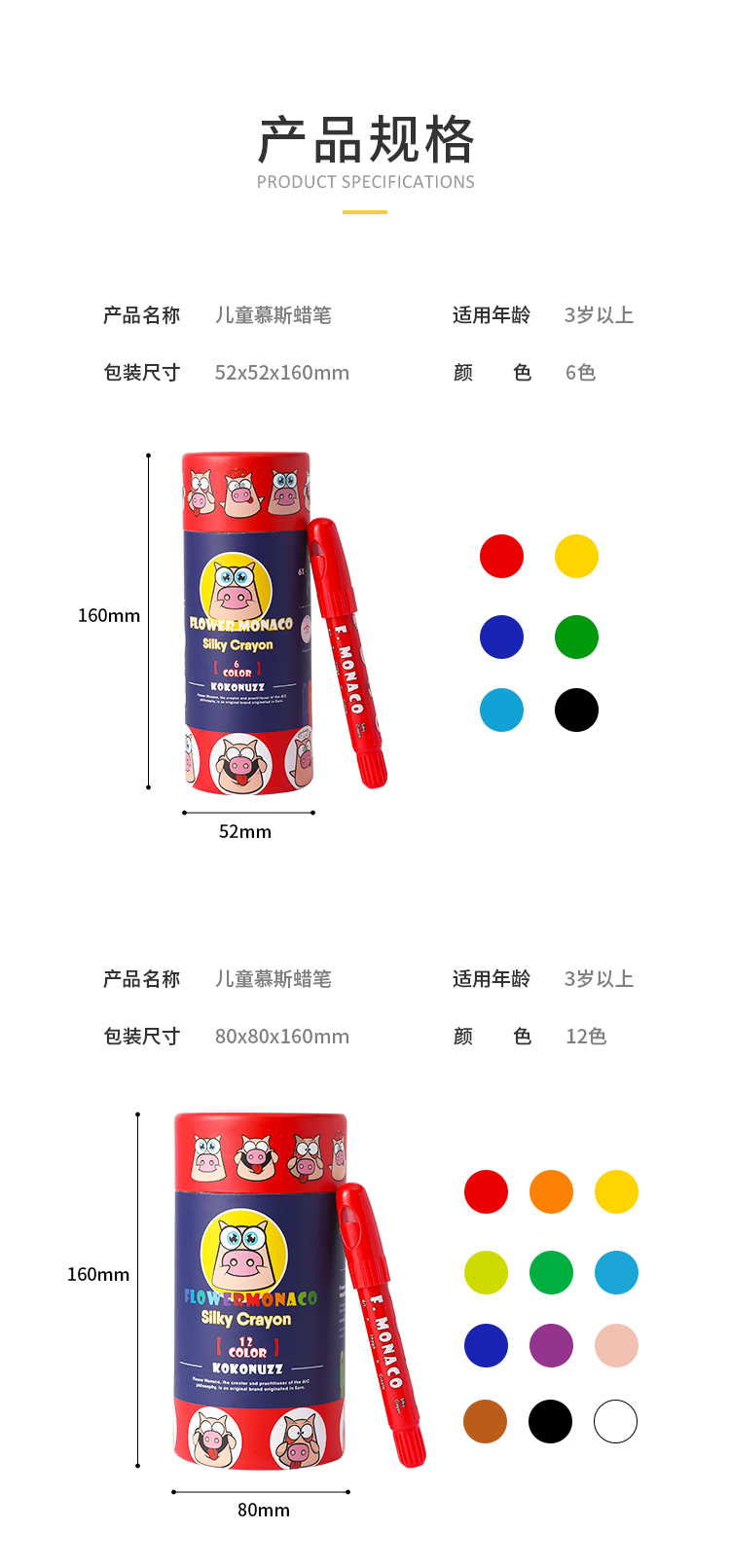 花芽FM600052慕斯蜡笔36色 Flower Monaco silky crayon