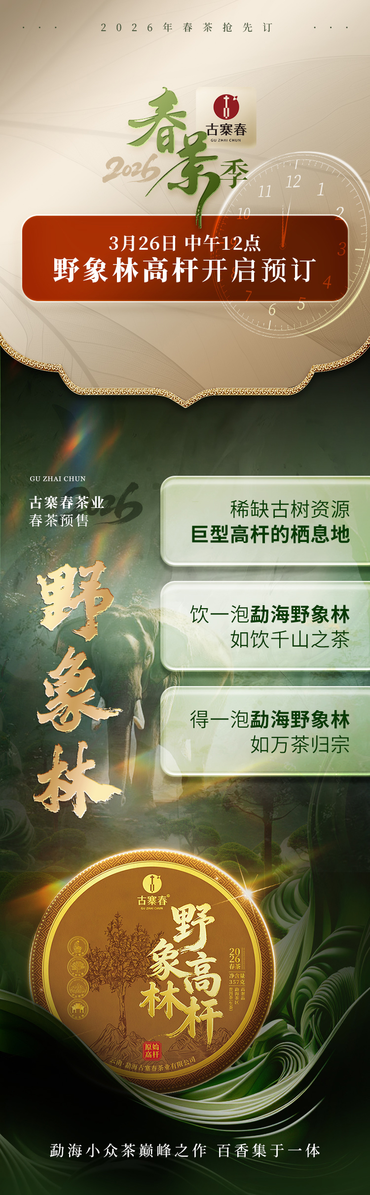 3月26日中午12点【野象林高杆】2026年勐海野象林稀缺古树资源 巨型高杆的栖息地 勐海国有林里的秘境 身处中老缅交界线处 数量稀少 357g/饼